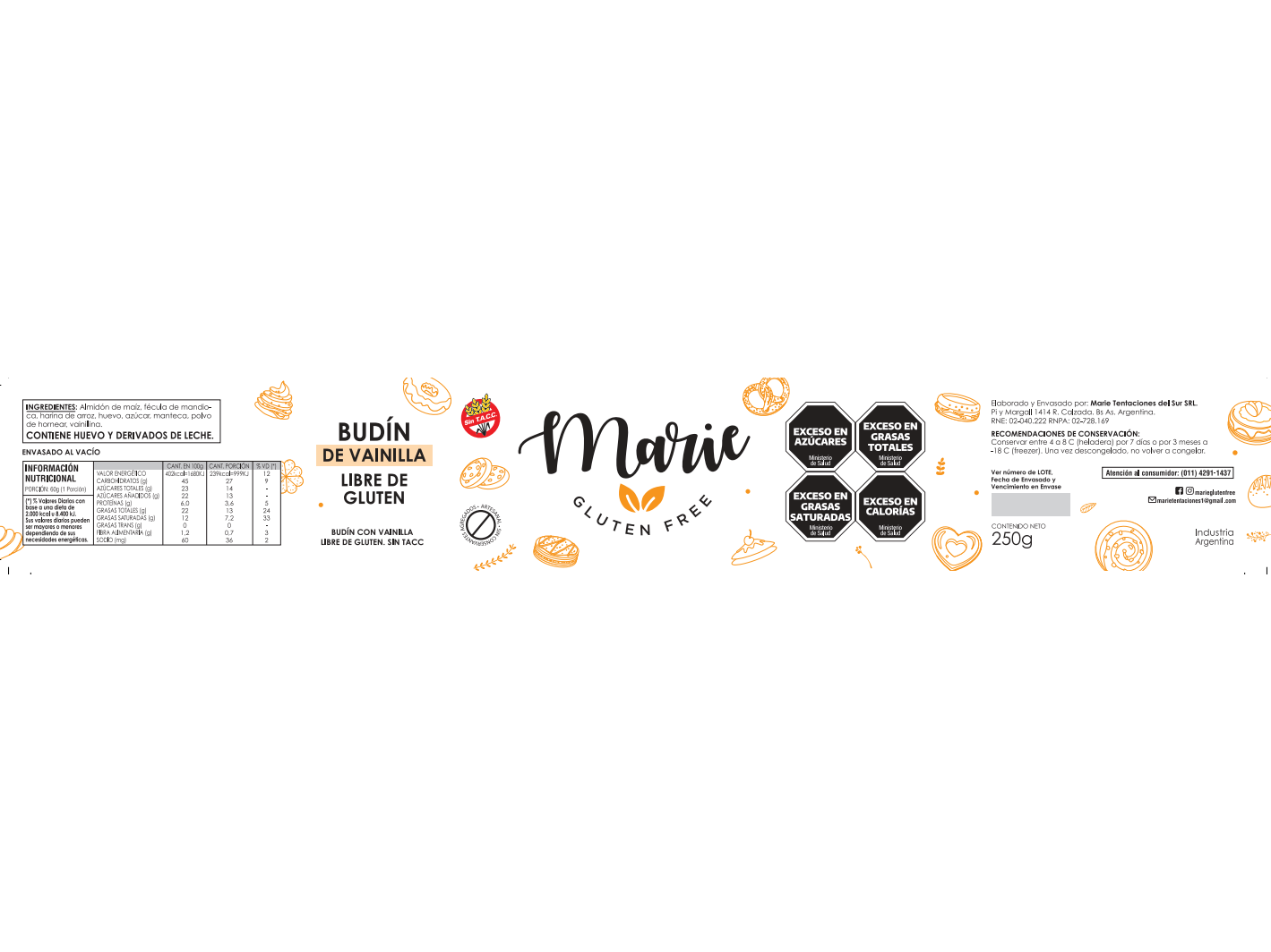 74-Budín de vainilla (250 gr.)Recomendaciones de conservación: El producto puede conservarse hasta 7 días en heladera (entre 1 a 5 ºC) y hasta 3 meses en freezer (18 ºC).$5.650 Observaciones 0 / 150