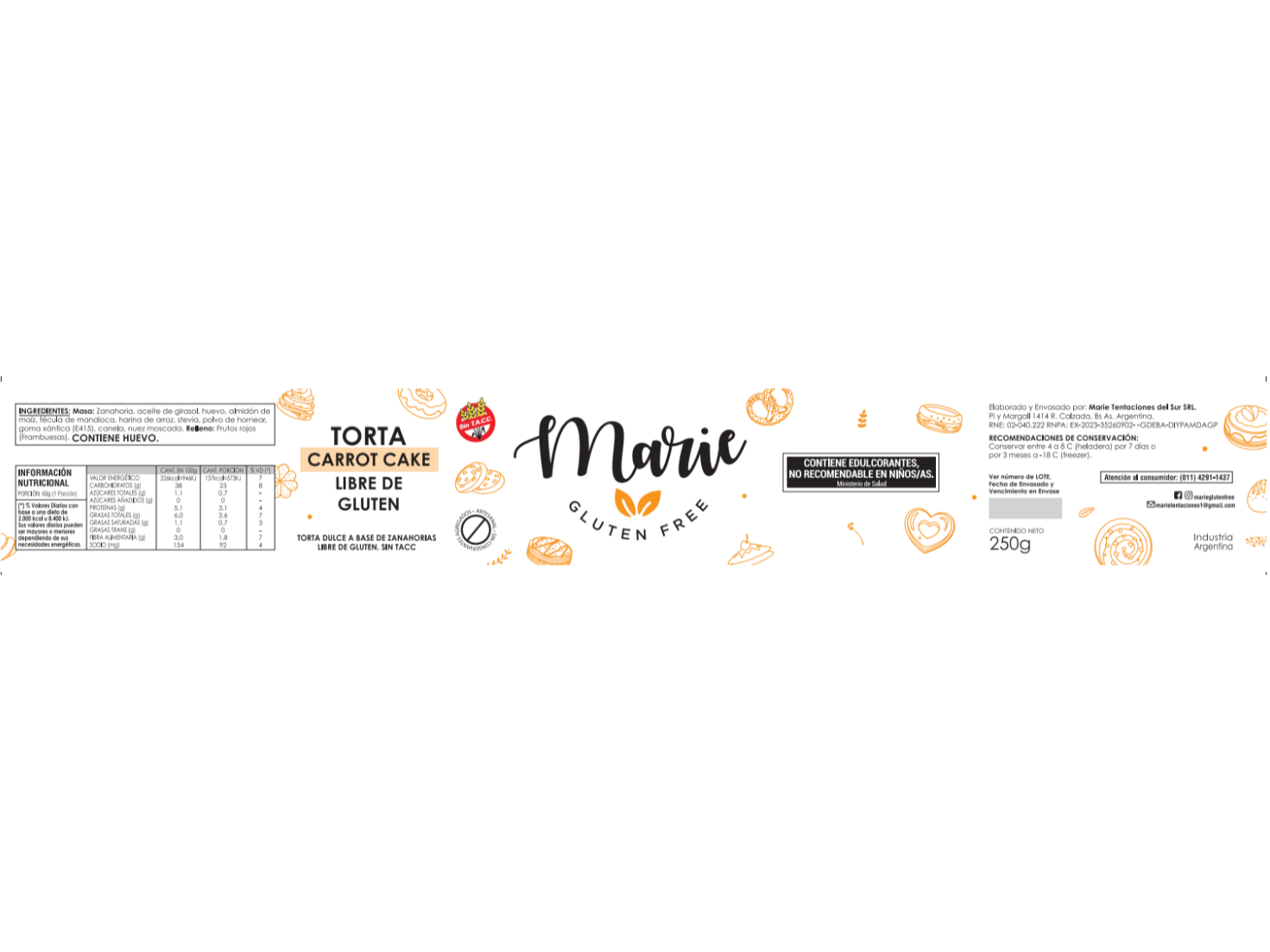 69-Carrot Cake individualRecomendaciones de conservación: El producto puede conservarse hasta 7 días en heladera (entre 1 a 5 ºC) y hasta 3 meses en freezer (18 ºC).$4.200 Observaciones 0 / 150