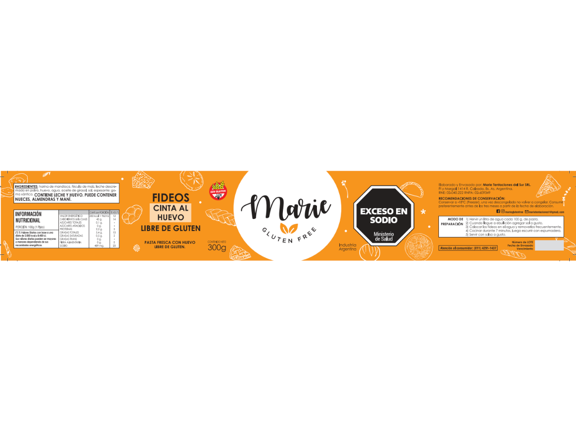 27-Fideos cinta al huevo (300 gr.)PRODUCTO CONGELADO. Recomendaciones de conservación: El producto puede conservarse hasta 3 meses en freezer (18 ºC), desde la fecha de elaboración.$4.850 Observaciones 0 / 150
