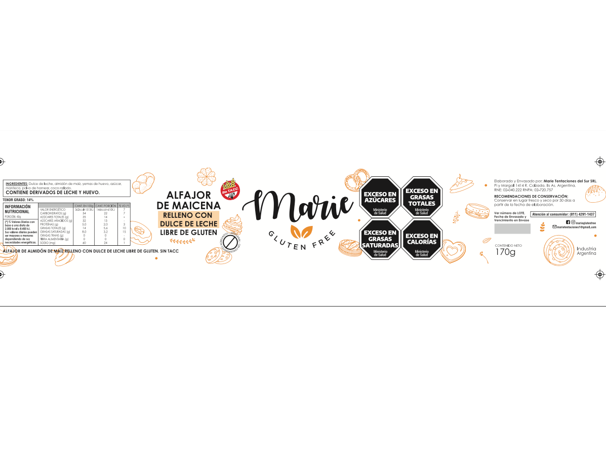 96-Alfajor de maicena (170 gr.)Recomendaciones de conservación: Mantener el producto en un lugar fresco y seco, sin refrigerar ni congelar. Consumir dentro de los 30 días desde su elaboración.$3.800 Observaciones 0 / 150