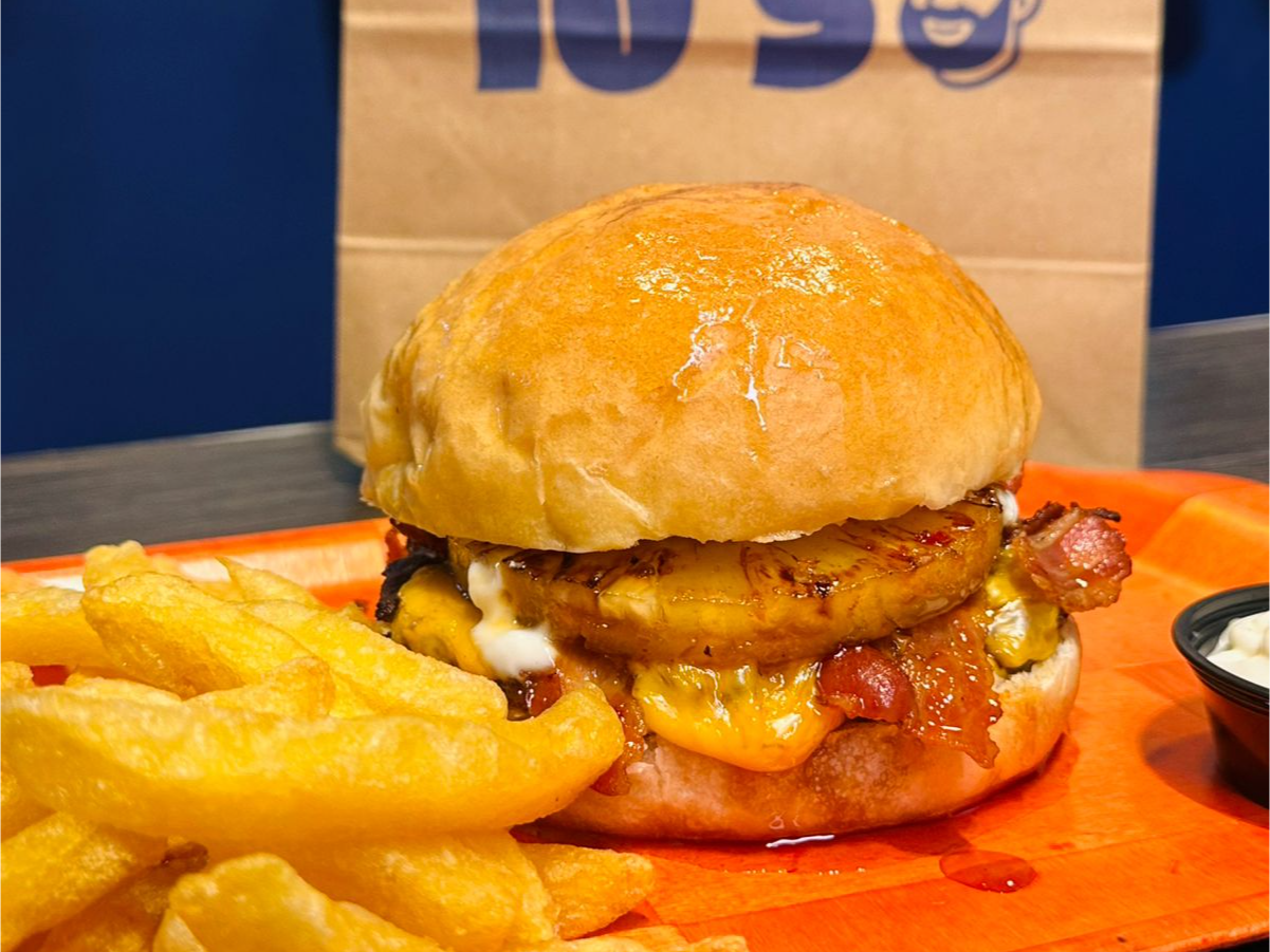 LA HAWAI Compartir por WhatsApp Copiar enlace Sin fotoPan brioche , medallon 150gr, cheddar x2, panceta ahumada x4, anana grillado, hot honey, alioli, papas y pote de mayo.$13.000 Observaciones 0 / 150