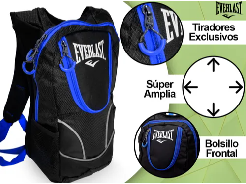 Mochila Everlast Running (21725)Tela impermeable, Con compartimento interno para bolsa hidrante. Con ajuste pectoral. 1 bolsillo frontal, 2 bolsillos laterales de red, 1 bolsillo superior de compartimento principal. Capacidad 12 litros$19.500 Observaciones 0 / 150