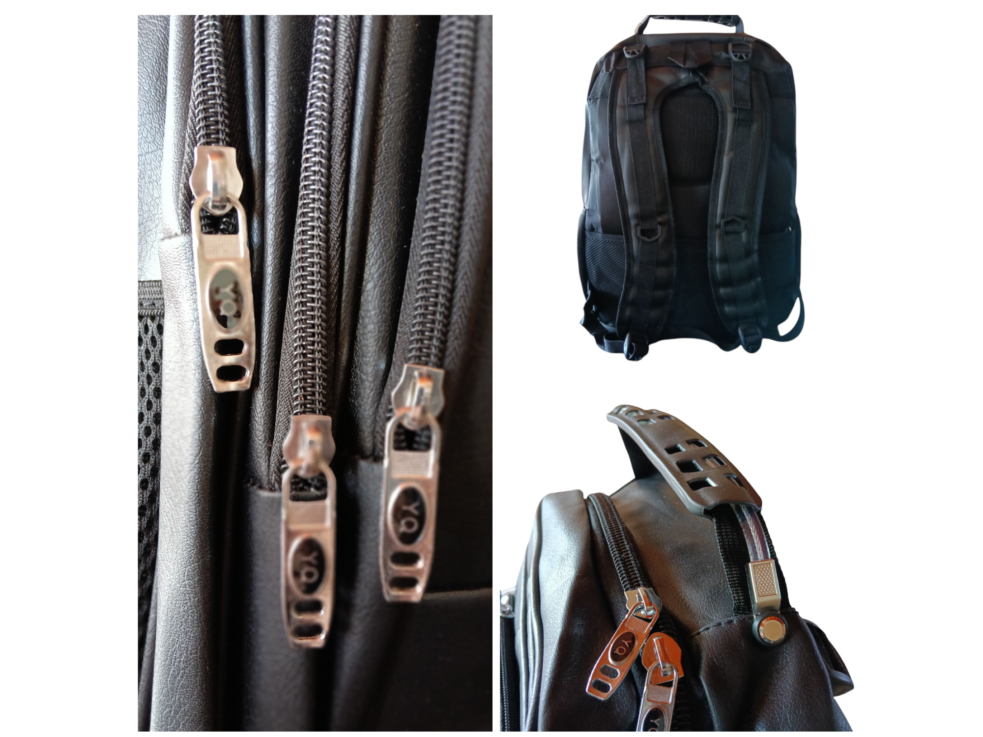 Tela ecocuero con cierres de nylon. Con gran capacidad de carga.