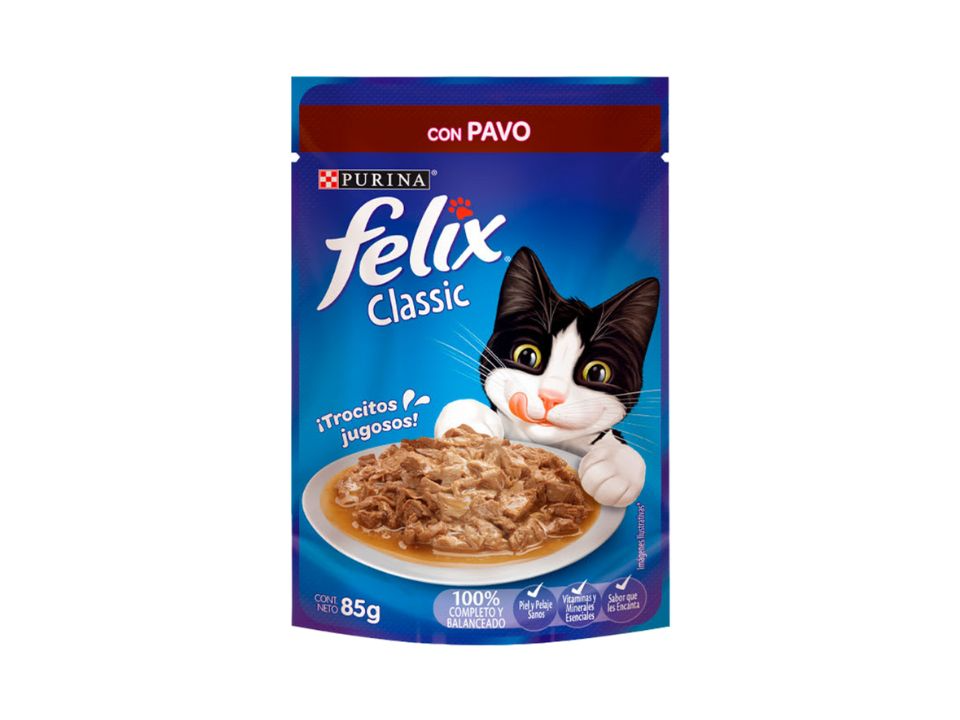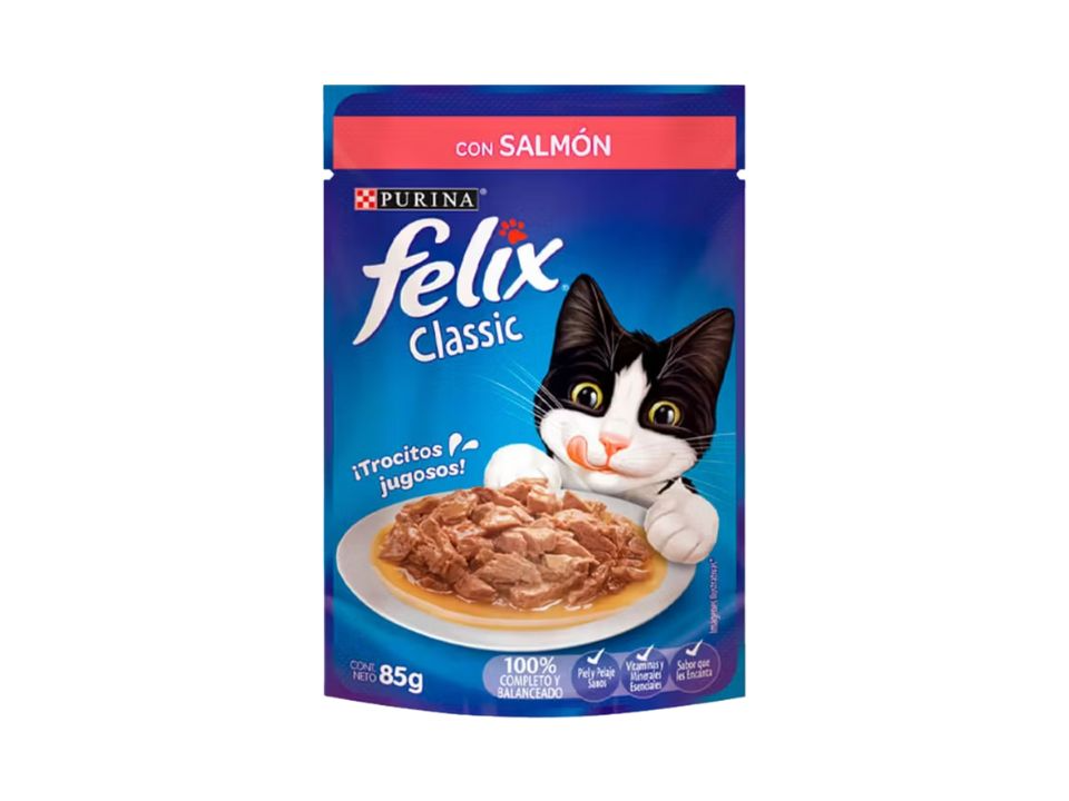 Sachet Felix es un alimento húmedo para gatos, presentado en un sobre individual (sachet o sobrecito), que proporciona nutrición completa y balanceada para gatos adultos y cachorros, elaborado con trozos de carne, pollo o salmón en una sabrosa salsa.