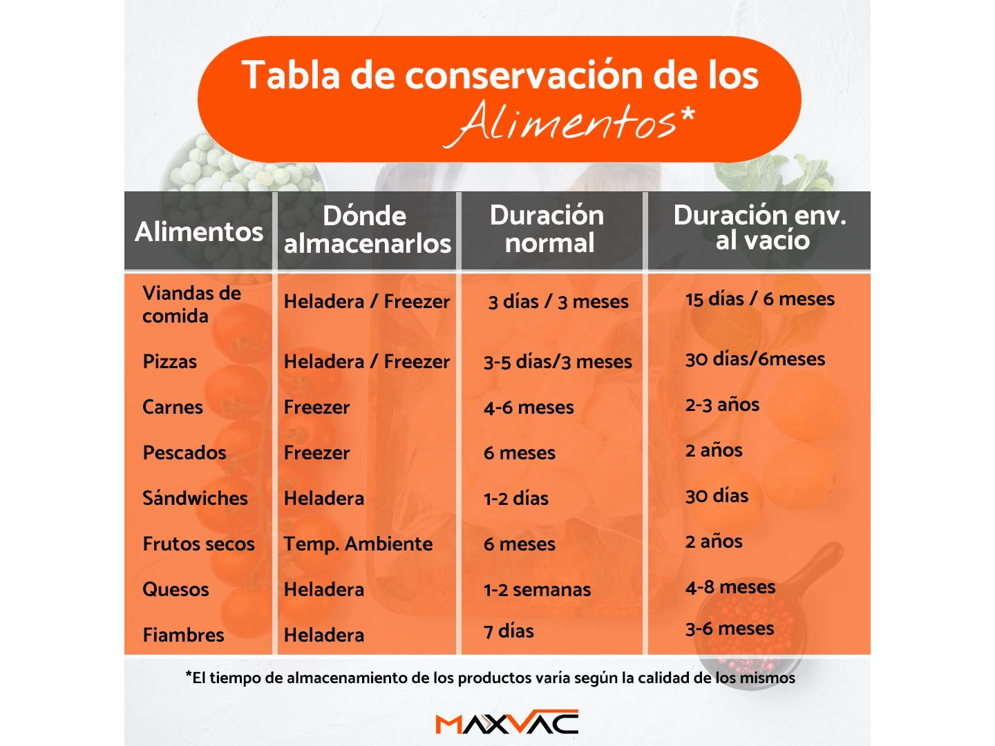 ◾Los tiempos de conservación de los alimentos son mucho mayores.