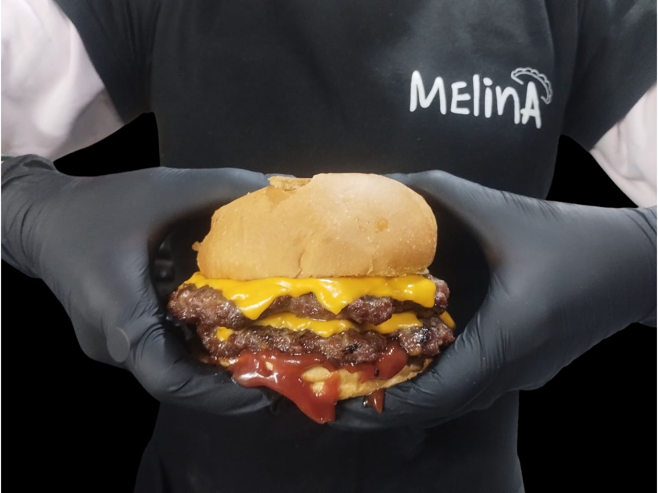 Medallon de carne vacuna de 120gr, doble cheddar, cebolla caramelizada y ketchup, con nuestro delicioso pan de queso. Acompañado con 300grs de guarnición de papas.