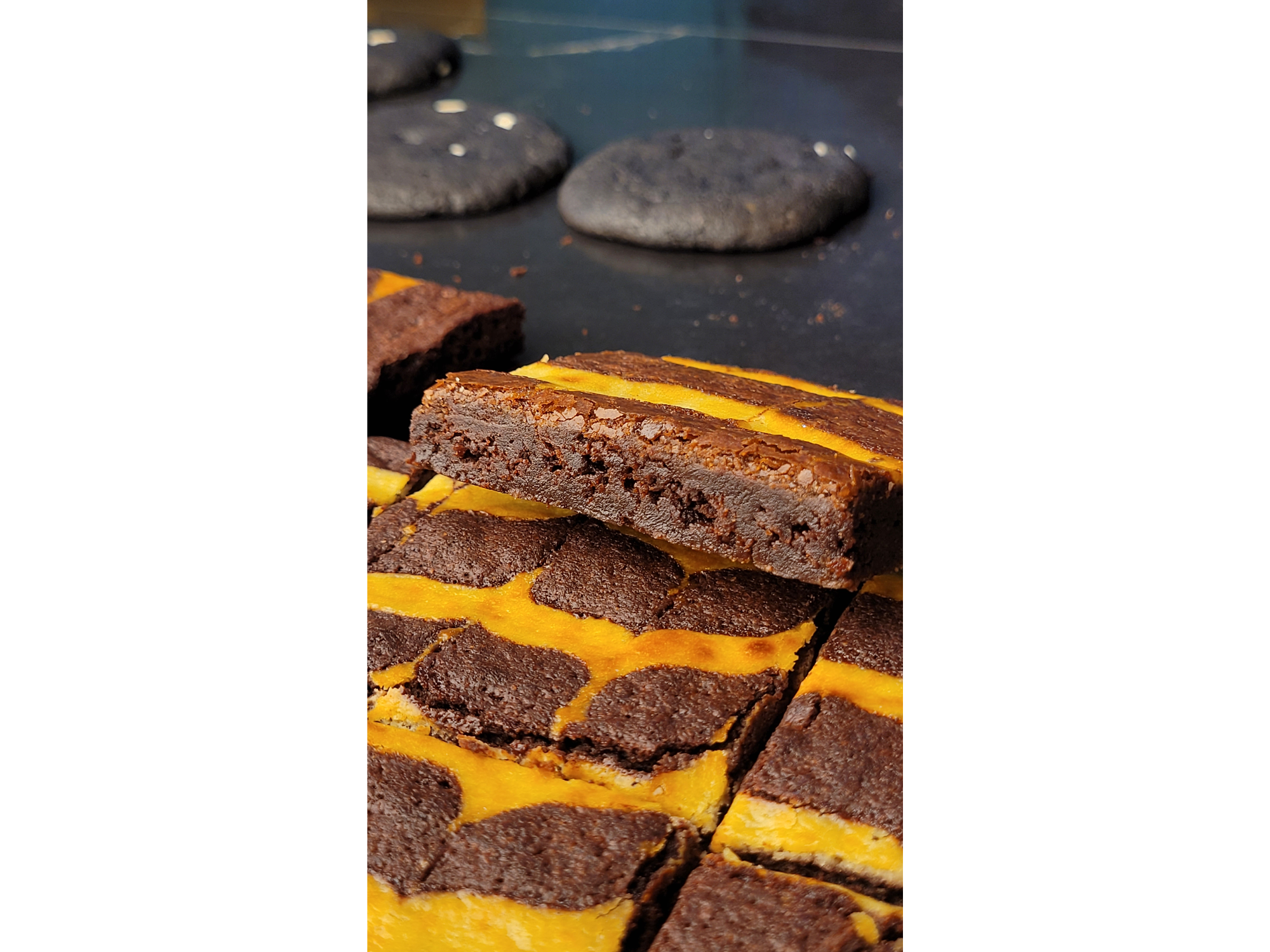 Brownie Red Velvet Compartir por WhatsApp Copiar enlace Brownie de autor hecho con cacao y extracto de vainilla natural, que le dan el sabor suave y característico del red velvet. La textura es cremosa por dentro, con una costra fina que acompaña perfecto. Está cubierto con una capa de cheesecake suave, que equilibra el sabor y lo vuelve distinto a cualquier otro brownie.$2.000 Observaciones 0 / 150