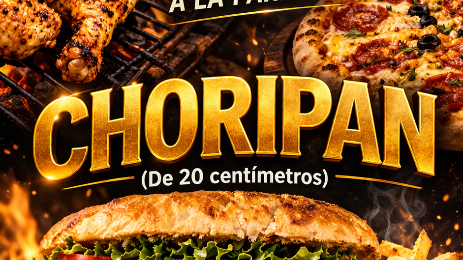 Categorías CHORIPAN !!VARIACION DE PIZZASMEDIO POLLOPOLLO ENTEROPOLLO CON CHAMPIÑONPOLLO 3 PATASPOLLO Y MEDIODOS POLLOSMAYONESA EXTRAEXTRAS