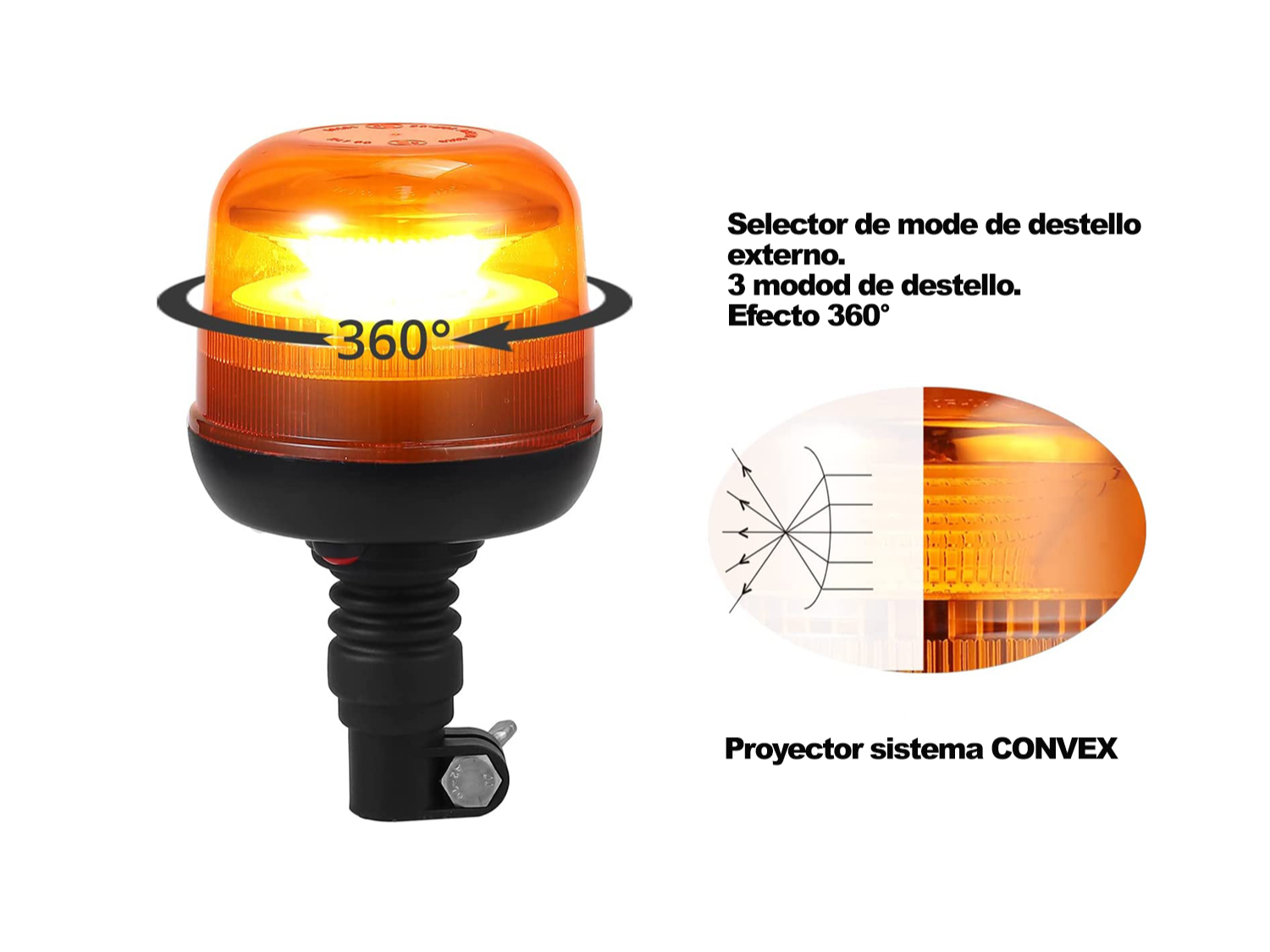 BALIZA TORRE AMBAR. 3 MODOS DE DESTELLO + EFECTO 360° SELECTOR DE MODO EXTERNO LED COB AMBAR SUPER BRILLANTE CARCASA DE PLÁSTICO PMMA BASE PARA SOPORTE METÁLICO ENCASTRABLE IDEAL PARA SEÑALIZACIÓN VEHICULAR Y MAQUINARIAS PRECIO FINAL, IVA INCLUIDO (21%)