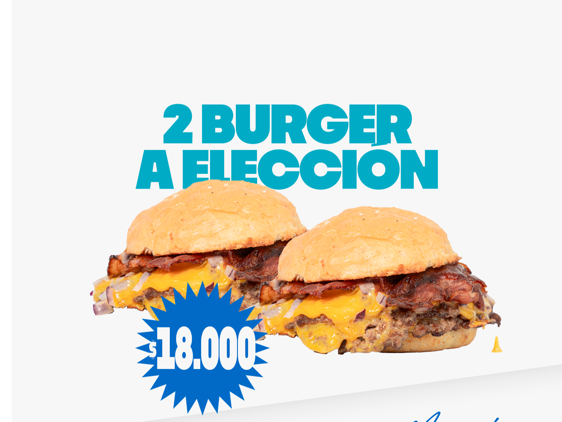 Aquí nuestras promos Compartir por WhatsApp Copiar enlace DOS BURGER A ELECCION $18.000 Wraps + lata de regalo $15.000$12.000 20% OFF