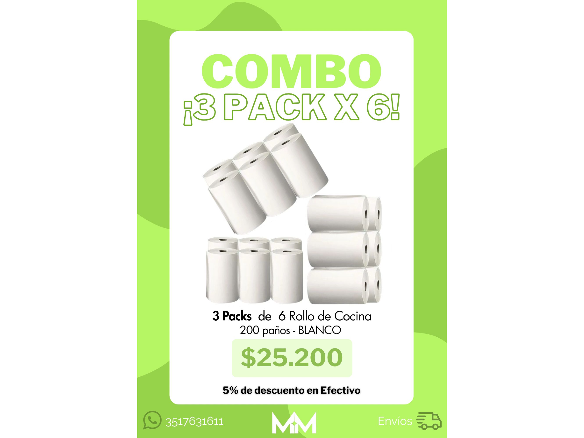 Rollo de Cocina 200 Paños "BLANCO ECO" - Pack por 6 Compartir - Nueva Presentación - Papel BLANCO Doble Hoja Presentaciones Seleccioná una opción.Comprando de a 1 pack (Precio x cada pack)$8.800Comprando de a 3 Packs (Precio x cada pack)$8.400 Observaciones 0 / 150