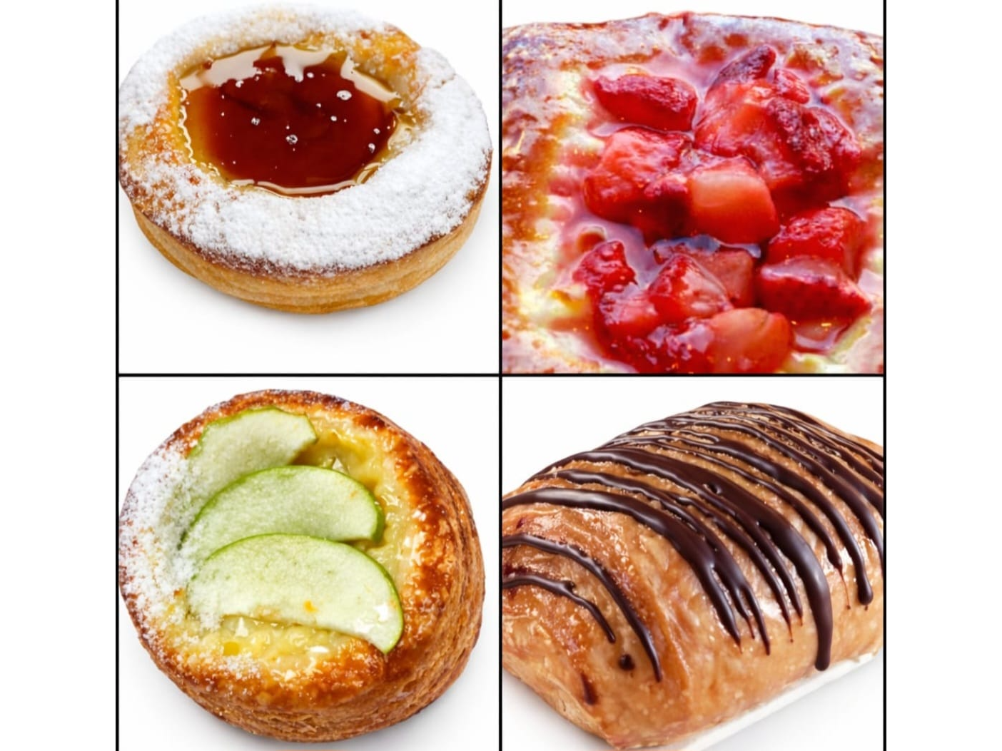 Vienesa de Manteca ( masa hojaldrada) rellena con crema pastelera casera Almíbar con Frutos Rojos ,Manzana , Durazno , Pera o Caramelo.