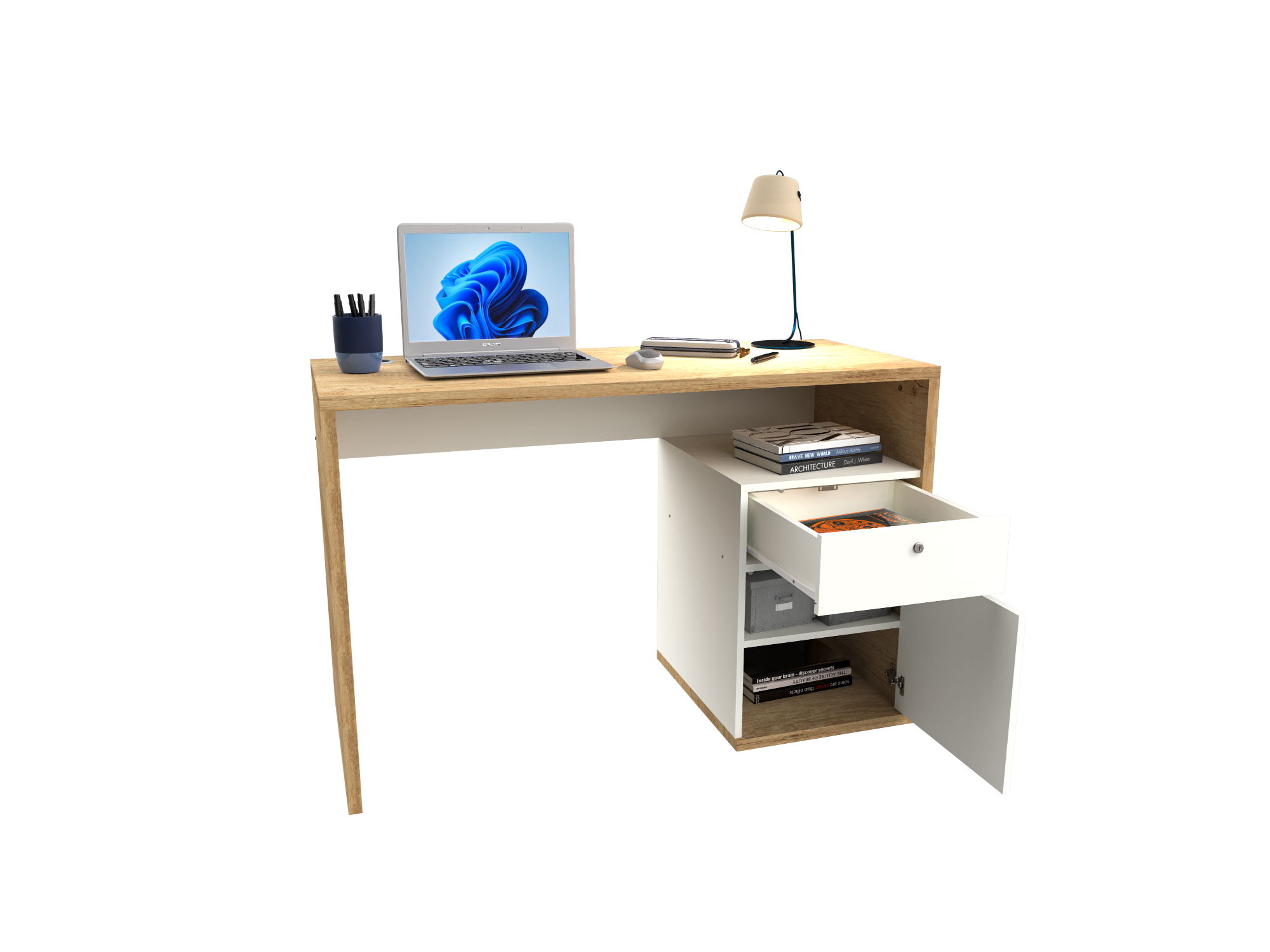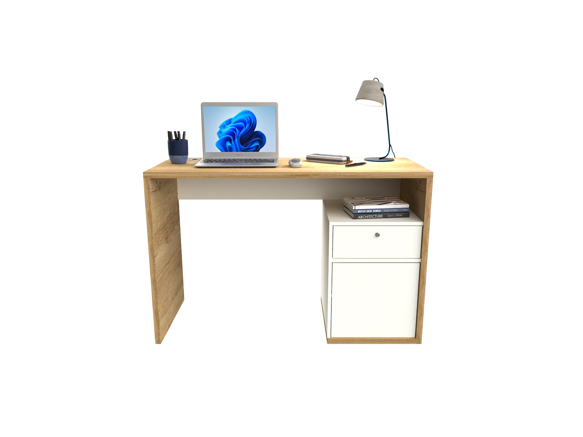 Escritorio 1 puerta + 1 cajon 1.20 Mts Roble Nebraska Natural / Blanco Laca