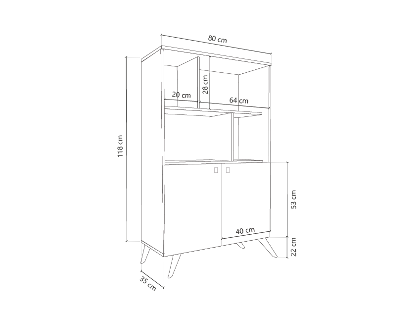 Biblioteca 2 puertas 1.40 Mts