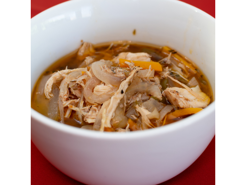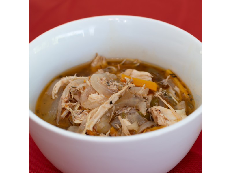 Tiernos trozos de pollo, marinados lentamente en una mezcla de especias, vinagre suave y vegetales frescos, para lograr ese sabor casero, profundo y auténtico que todos recordamos de las fiestas en familia.