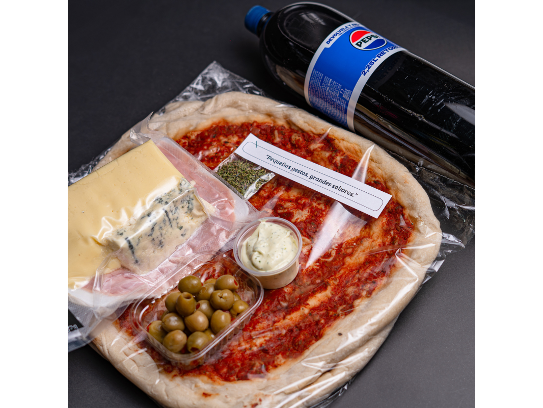 ESPECIAL+ ROQUEFORTEl Mix Perfecto 2 UNIDADES DE PREPIZZA A LA PIEDRA | ESTILO NAPOLITANO | ELABORACIÓN PROPIA. 500 gr de muzza 150 GR DE JAMON COCIDO 100 GR DE ROQUEFORT 100 gr de ac. RELLENAS Hecho para vos: fresco, rápido y pensado para que disfrutes sin ensuciar nada. 👉 Reservá y cociná en 10 min. Presentaciones Seleccioná una opción.Basico Descripcion arriba ↑ $18.500$15.697 15% OFF EL MAS VENDIDO ⭐ Basico + Pepsi o 7UP 2,25 Desc, + DiP (mayo alioli) + Bols. de Oregano. $19.197 Personalizá tu selección Las siguientes opciones aplican para cada producto agregado. ELEGI TU BASE DE PRE-PIZZA Seleccioná una opción. Obligatorio 2 Prepizzas a la Piedra Estilo Napo | Elaboración Propia | Estiradas a mano . 2 Prepizzas a la Piedra (1 Napo + 1 Fugazetta) 1 Estilo Napo + 1 con Cebolla. $1.500$1.000 33% OFF Complementos para tu pedido Agregá items adicionales a tu pedido. SUMALE TOPPINGS FAVORITOS A TU PIZZA Seleccioná las opciones que quieras.Doble Muzza 200 gr de muzza Bari. $2.000Doble Jamón. x 100 gr de J. cocido Grassetto sintacc. $1.000Jamon Crudo x 100 gr sumale un toppings especial. $2.409Roquefort 100 gr la Quesera Agregale este Toppings Irresistible. $1.600Cantimpalo Español. x 100 gr de Cantimpalo Recreo. $1.650Extra Aceitunas Verdes. x 100 gr de Ac. Olivarez. $650Tomate en Conserva x 100gr Tomates Desecados Hidratados. $3.100 QUE TAL UNA BEBIDA? Seleccioná las opciones que quieras.LATA 1890 X 473 CC CERVEZA RUBIA|LINEA QUILMES $1.200$1.049 13% OFF PEPSI 2,25 RETORNABLE (ENVASE DE REGALO) $2.700$2.349 13% OFF PEPSI BLACK 2,25 LT RETORNABLE (ENVASE DE REGALO) $2.700$2.349 13% OFF 7UP 2,25 LT RETORNABLE (ENVASE DE REGALO) $2.700$2.349 13% OFF Observaciones 0 / 150 Encontrá productos relacionados LO MAS VENDIDO (6) LATA 1890 DE REGALO (9) NUEVO COMBO (9) OFERTA (22)