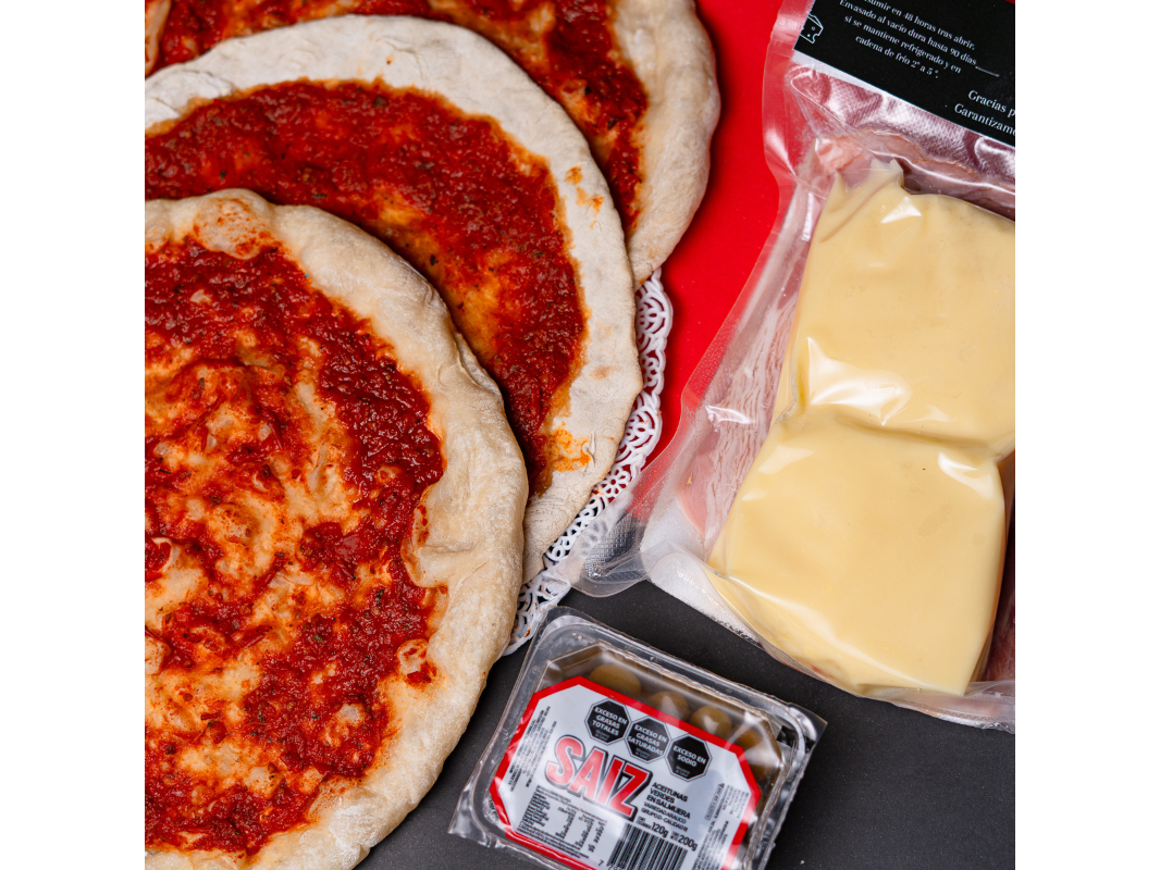 COMBO PIZZETA 2Diseña Tu Pizza Única 3 prepizzas Medianas a la Piedra | Estilo Napolitano | Elavoracion Propia. 600 g de muzza 100 g de jamón cocido 100 g de panceta ahumada 100 g de aceitunas verdes Hazlo y prueba! Presentaciones Seleccioná una opción.Basico Descripcion arriba ↑ $22.500$18.700 17% OFF EL MAS VENDIDO ⭐ Basico + Pepsi o 7UP 2,25 Desc, + DiP (mayo alioli) + Bols. de Oregano. $22.200 Complementos para tu pedido Agregá items adicionales a tu pedido. SUMALE TOPPINGS FAVORITOS A TU PIZZA Seleccioná las opciones que quieras.Doble Muzza 200 gr de muzza Bari. $2.000Doble Jamón. x 100 gr de J. cocido Grassetto sintacc. $1.000Jamon Crudo x 100 gr sumale un toppings especial. $2.409Roquefort 100 gr la Quesera Agregale este Toppings Irresistible. $1.600Cantimpalo Español. x 100 gr de Cantimpalo Recreo. $1.650Extra Aceitunas Verdes. x 100 gr de Ac. Olivarez. $650Tomate en Conserva x 100gr Tomates Desecados Hidratados. $3.100 QUE TAL UNA BEBIDA? Seleccioná las opciones que quieras.LATA 1890 X 473 CC CERVEZA RUBIA|LINEA QUILMES $1.200$1.049 13% OFF PEPSI 2,25 RETORNABLE (ENVASE DE REGALO) $2.700$2.349 13% OFF PEPSI BLACK 2,25 LT RETORNABLE (ENVASE DE REGALO) $2.700$2.349 13% OFF 7UP 2,25 LT RETORNABLE (ENVASE DE REGALO) $2.700$2.349 13% OFF Observaciones 0 / 150 Encontrá productos relacionados LATA 1890 DE REGALO (9) NUEVO COMBO (9) OFERTA (22)