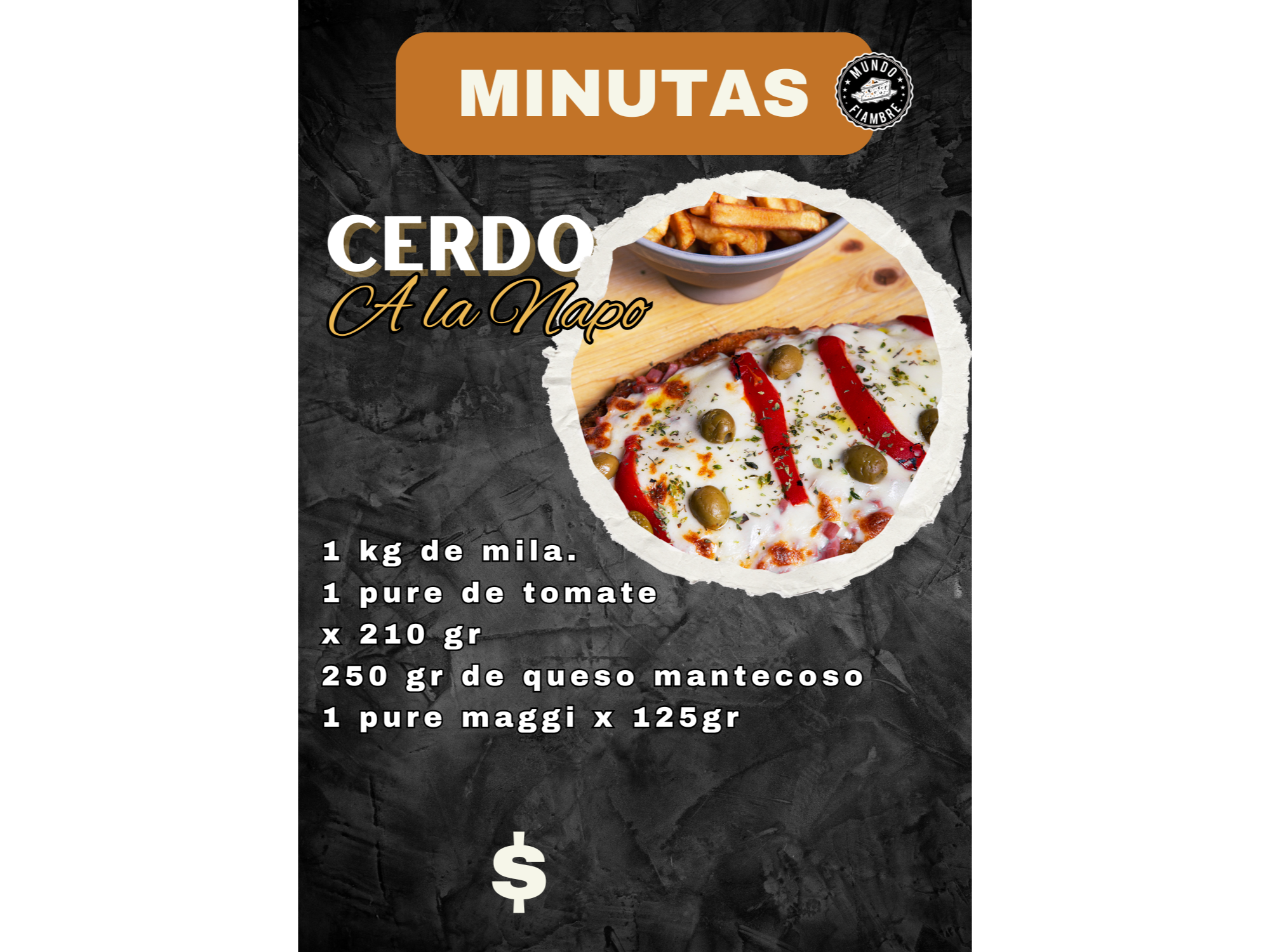 MILANESA DE CERDO A LA NAPO1 kg de milanesa (elaboración propia) 1 puré de tomate x 200 gr 250 gr de queso cremoso 1 puré de papa maggi x 125 gr$14.497 Complementos para tu pedido Agregá items adicionales a tu pedido. QUE TAL UNA BEBIDA? Seleccioná las opciones que quieras.LATA 1890 X 473 CC CERVEZA RUBIA|LINEA QUILMES $1.200$1.049 13% OFF PEPSI 2,25 RETORNABLE (ENVASE DE REGALO) $2.700$2.349 13% OFF PEPSI BLACK 2,25 LT RETORNABLE (ENVASE DE REGALO) $2.700$2.349 13% OFF 7UP 2,25 LT RETORNABLE (ENVASE DE REGALO) $2.700$2.349 13% OFF Observaciones 0 / 150
