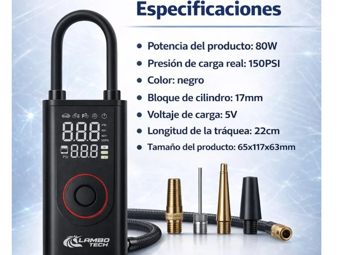 Incluye manguera, cable USB, cable de alimentación para auto, 3 picos intercambiables, listos para cubrir todas tus necesidades.