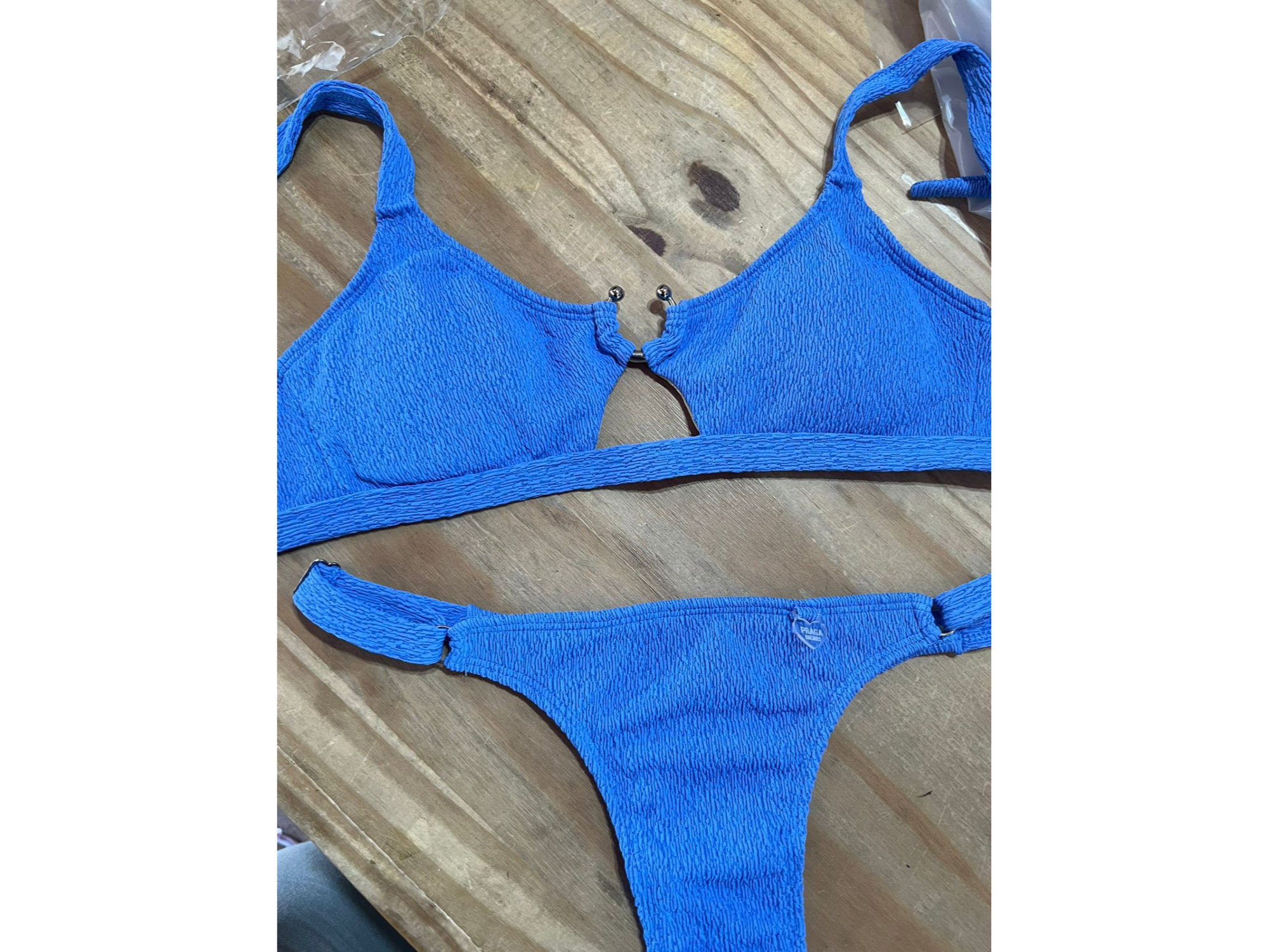 BIKINI AMBER TEXTURA 2 unidades en stock Bikini de aro, breteles regulables, espalda para atar, y tazas desmontables. Colaless. Color celeste Talle 100$59.000 Observaciones 0 / 150