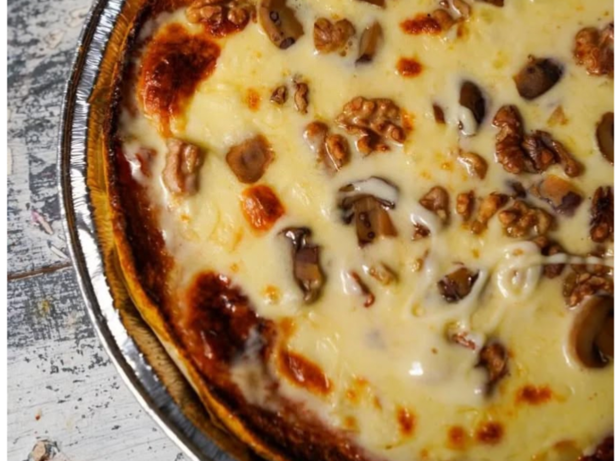 Pizza masa de calabaza y zanahoria con queso, hongos y nueces22 cm 6 porciones$16.300 Observaciones 0 / 150