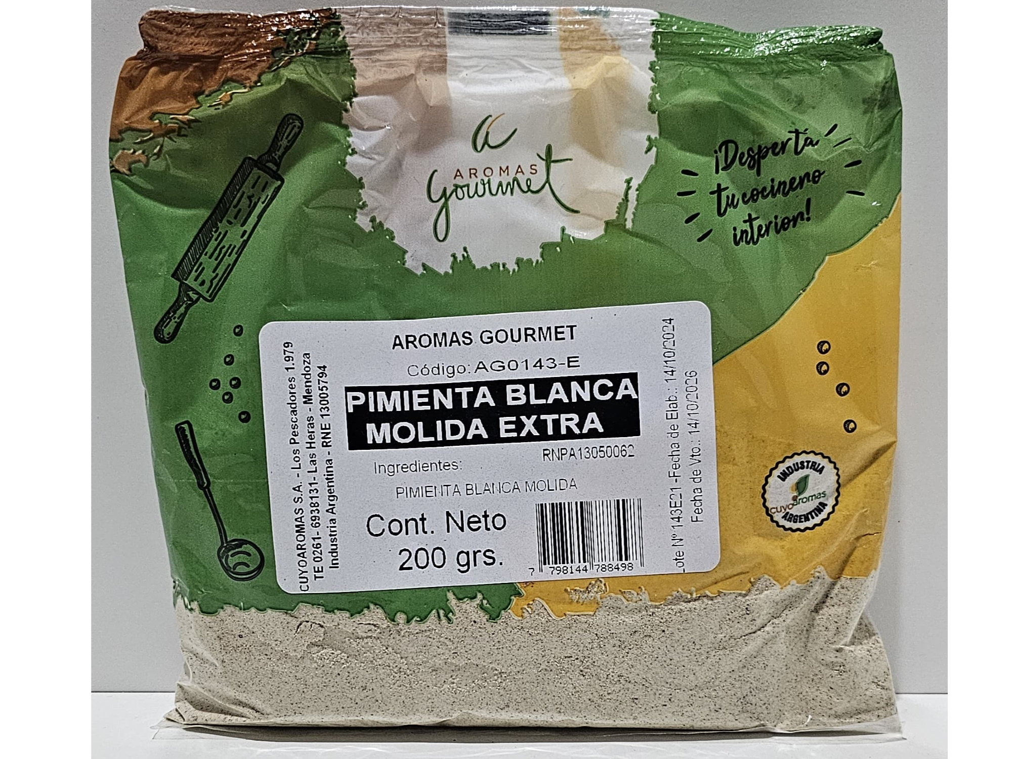 PIMIENTA BLANCA MOLIDAPIMIENTA BLANCA MOLIDA Presentaciones Seleccioná las opciones que quieras.PIMIENTA BLANCA MOLIDA x 1kg$35.400PIMIENTA BLANCA MOLIDA x 200gr$9.400PIMIENTA BLANCA MOLIDA x 5Ogr$2.900 Observaciones 0 / 150
