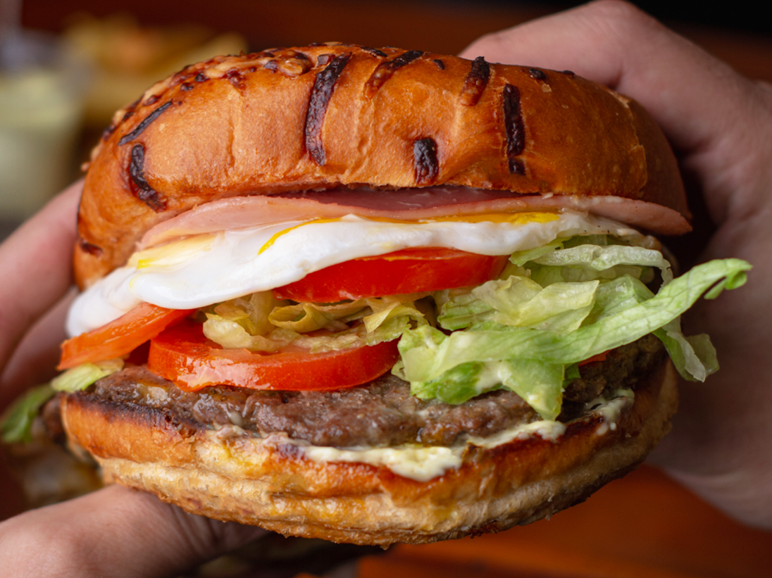 La favorita de siempre: medallón de carne de 120gr, jugoso y dorado, acompañado de tomate fresco, lechuga crocante, huevo a la plancha y la combinación infalible de jamón y queso fundido. Un clásico que nunca falla, pensado para quienes aman los sabores auténticos.