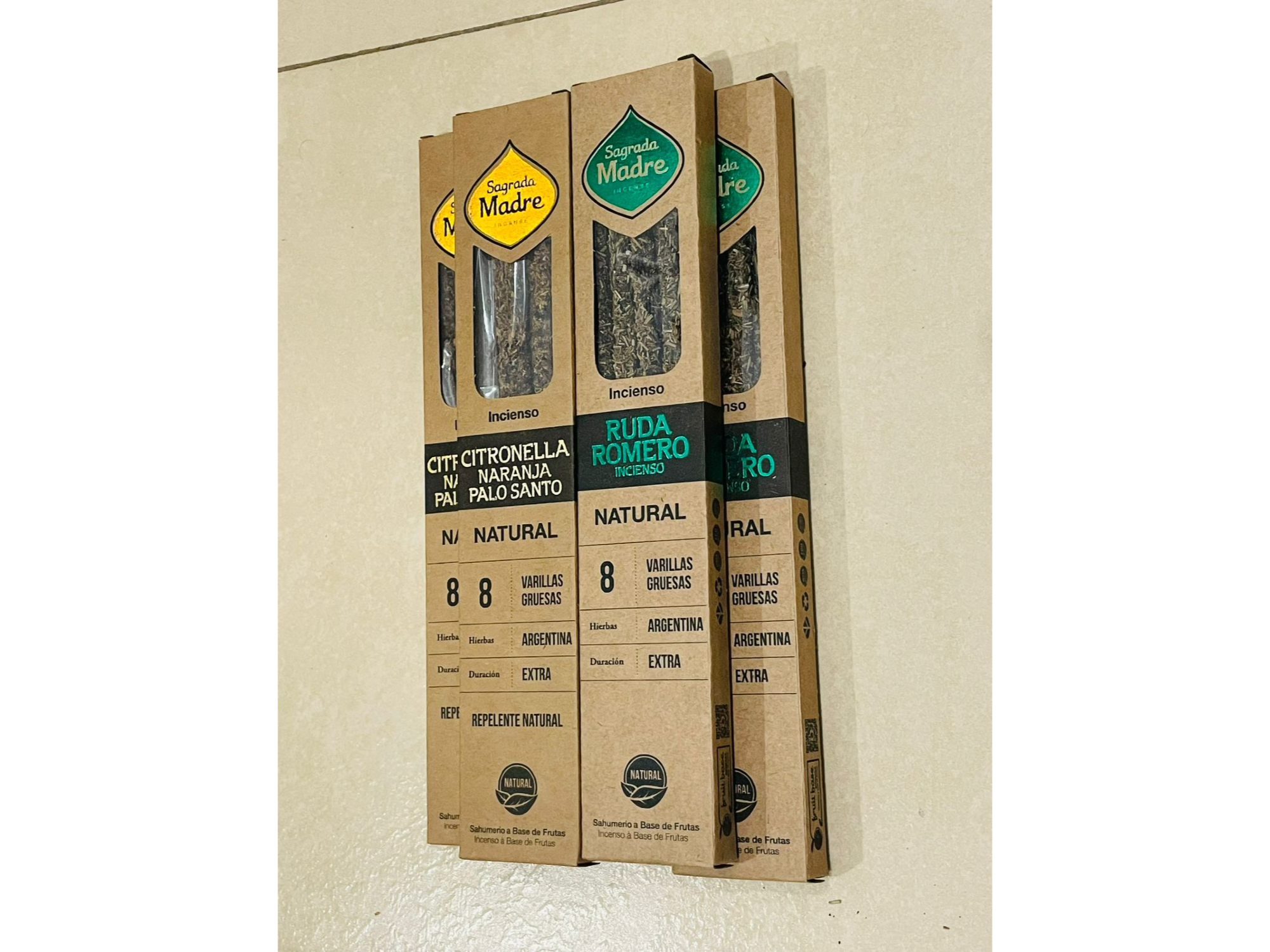NATURAL- con resinas naturales8 varillas a base de resinas naturales- Duración aproximada 1 H Presentaciones Seleccioná las opciones que quieras.BENJUI TRANQUILIDAD- con resinas de INDIA $3.000ROMERO Y RUDA ENERGÍA- con hierbas de Argentina $3.000SÁNDALO CALMA- con madera de INDIA $3.000OLÍBANO ESPIRITUALIDAD- con resina de AFRICA $3.000COPAL PROTECCION- copal de PERÚ $3.000SALVIA BLANCA CONEXION- con resinas de NORTE AMERICA $3.000MIRRA PURIFICACION- mirra MEDITERRANEA $3.000MIRRA-OLÍBANO PAZ INTERNA- con resinans de INDIA y AFRICA $3.000AMBAR TRANSMUTACION- con resinas de INDIA $3.000CITRONELLA NARANJA Y PALO SANTO REPELENTE NATURAL- con hierbas de Argentina $3.000PACHULI PASIÓN- con hierbas de Malasia $3.000YAGRA Con resinas de la INDIA- ATRACCION $3.000 Observaciones 0 / 150