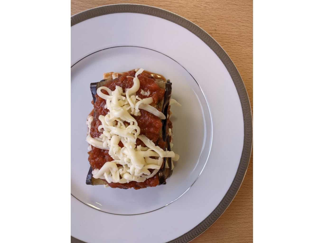 LASAÑA DE BERENJENA TOMATE Y MUZZARELLA