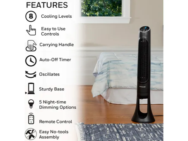 Ventilador de torre Honeywell HYF260 turbo estructura color negro/blanco Voltaje: 127V.