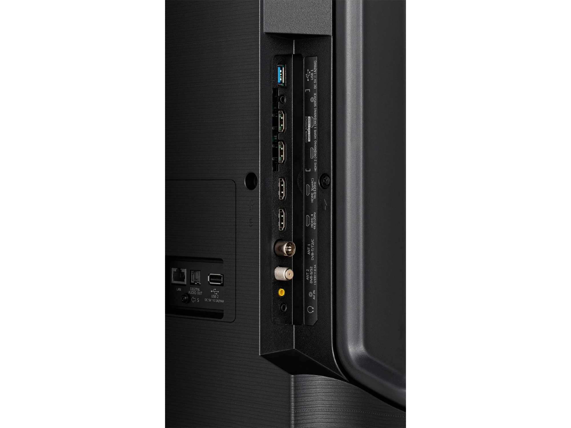 Conectividad: Bluetooth, 3 puertos HDMI (HDMI 3 y 4 compatibles con 144Hz), 2 puertos USB, entrada RF, entrada AV, Ethernet, Wi-Fi.