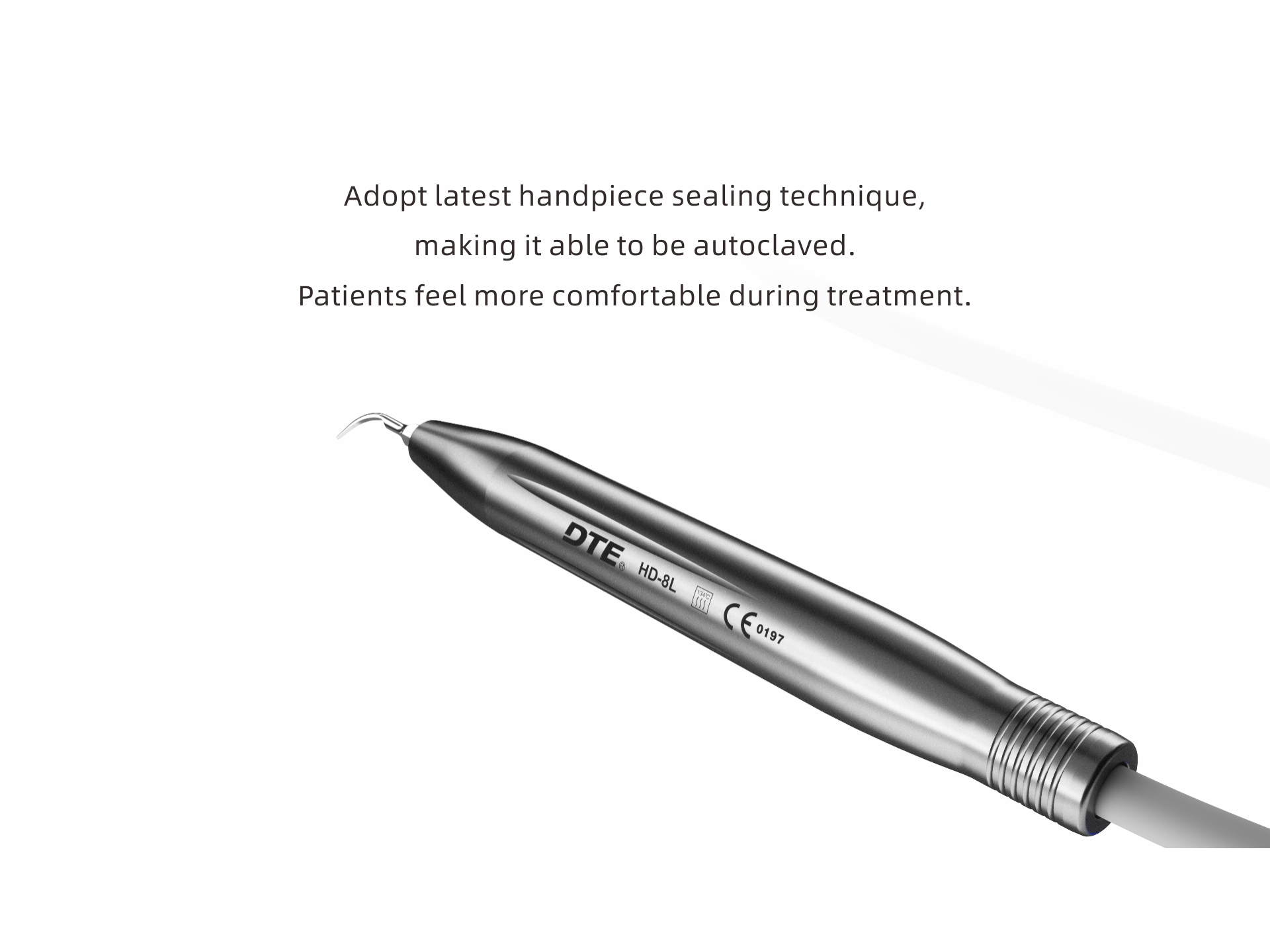 El DTE S6 es un cavitador ultrasónico multifunción diseñado para tratamientos de periodoncia, endodoncia y profilaxis. Gracias a su control por microordenador y a la tecnología de seguimiento automático de frecuencia, ofrece un rendimiento constante, estable y seguro, brindando al paciente una experiencia de tratamiento más confortable.
