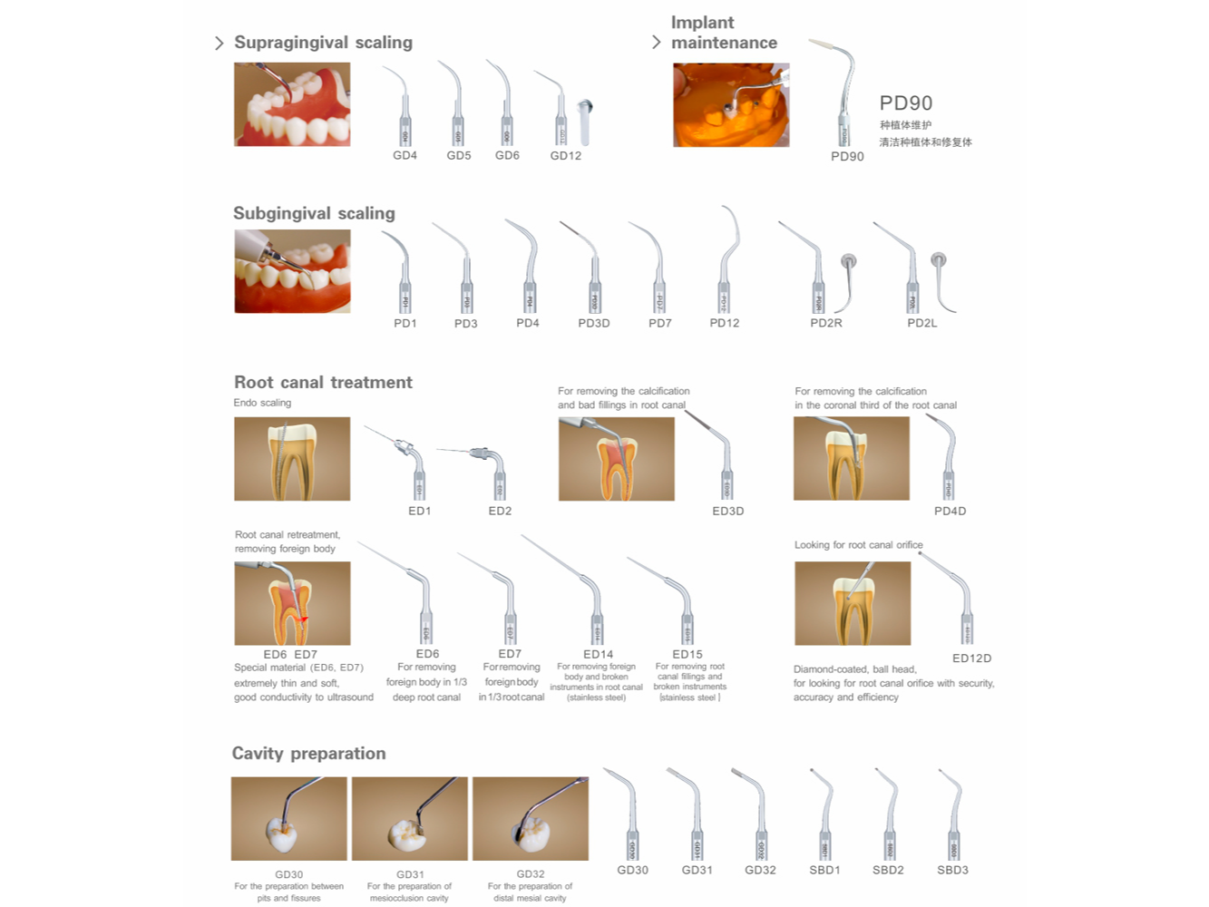 • Insertos incluidos: 5 puntas de acero quirúrgico, resistentes y totalmente autoclavables, diseñadas para diferentes aplicaciones clínicas.