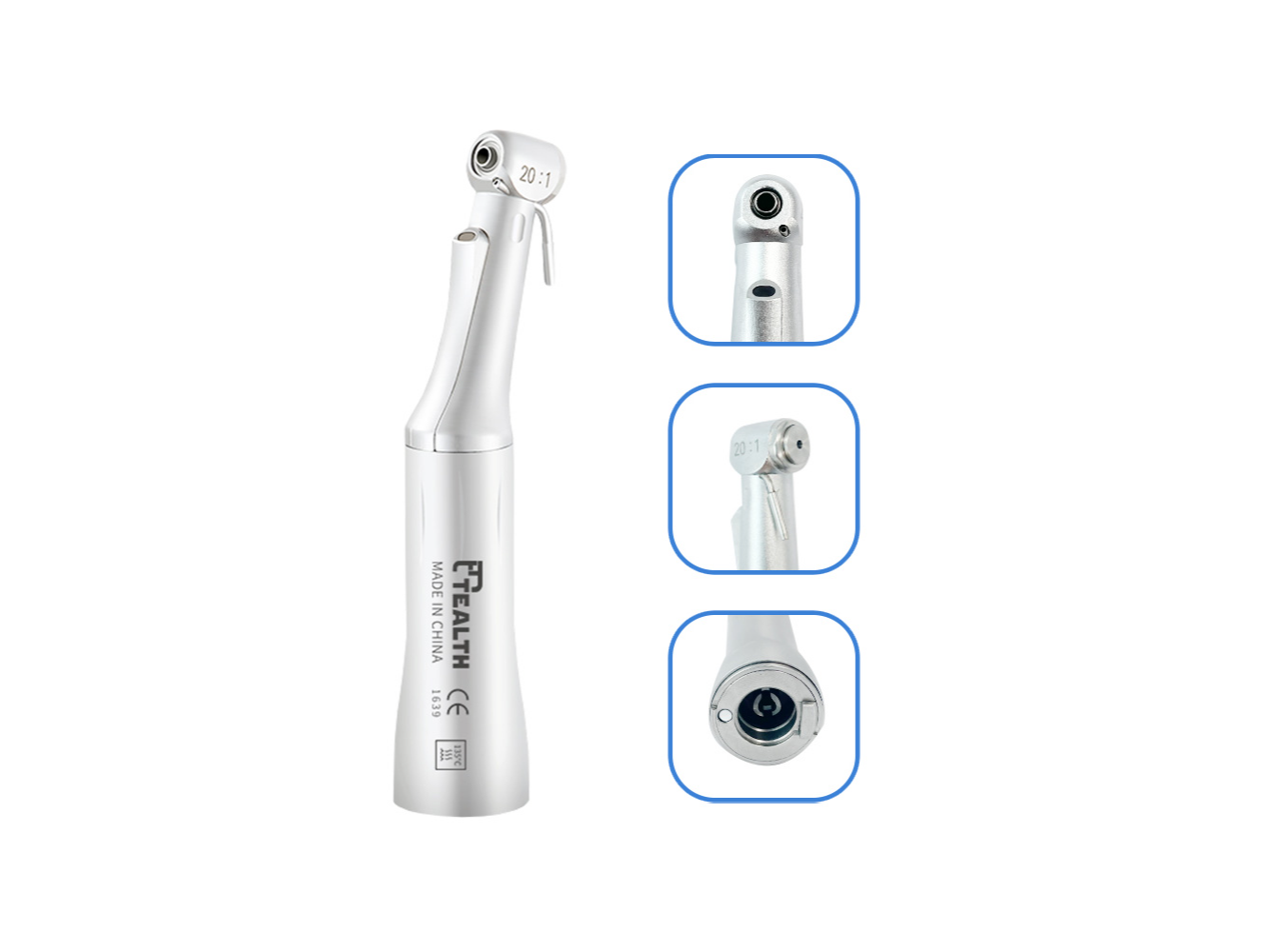 Con relación de reducción 20:1, permite un rango de velocidad de 5 a 2.000 r/min con una fuerza de torsión de hasta 70 N·cm, ideal para fresado óseo y colocación de implantes. Incluye sistema de irrigación externa, asegurando refrigeración constante y eficiente. Su botón pulsador facilita la colocación y retiro rápido de fresas, mientras que su construcción robusta lo prepara para múltiples ciclos de esterilización sin pérdida de rendimiento.