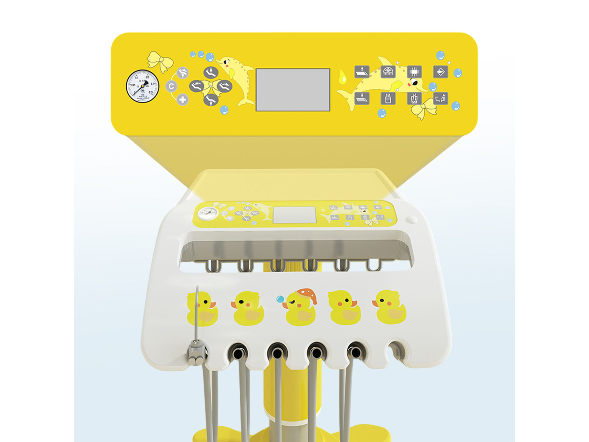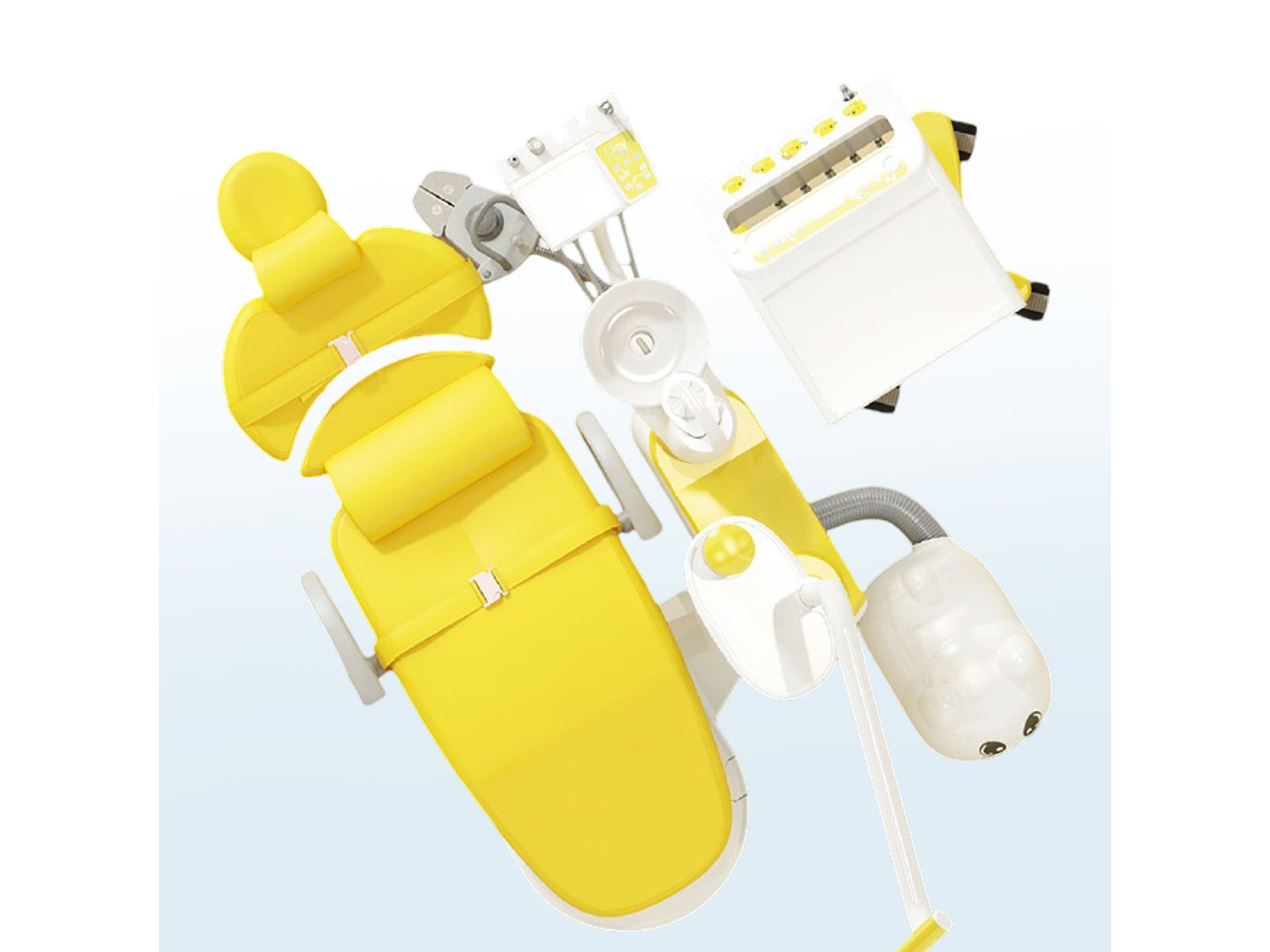 El X9 Pediátrico – Nueva Línea Mod. 2026 eleva la apuesta de CINGOL en un segmento prácticamente ausente en el mercado argentino: un sillón diseñado desde cero para pacientes infantiles. La paleta amarillo–blanco, los volúmenes redondeados y la iconografía clara generan confianza inmediata y bajan la ansiedad; mientras que el panel de control (táctil o con botones, según versión), el carro rodante con bloqueo y la ergonomía real para niños le permiten trabajar con mayor eficiencia. La música integrada (USB, Bluetooth y Música Send) completa un entorno cálido y colaborativo.