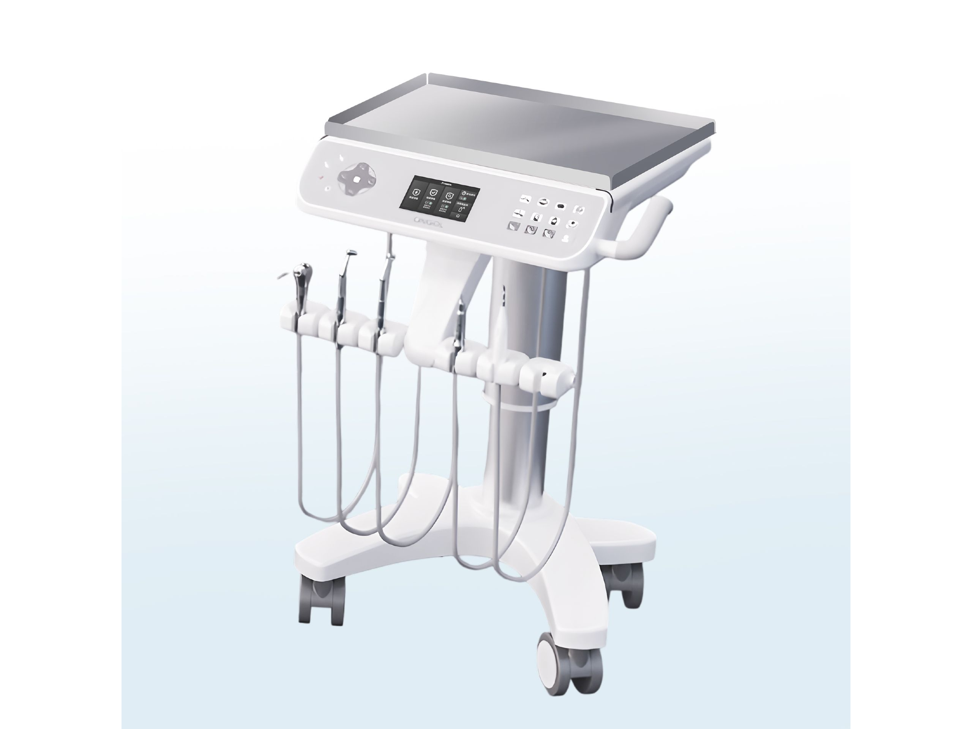 • Bandeja rodante táctil de diseño europeo: Incorpora bandeja metálica de acero inoxidable (superficie completa) para desplegar instrumental e insumos con acceso inmediato. La interfaz táctil/IR renovada aporta un uso moderno, preciso y cómodo.