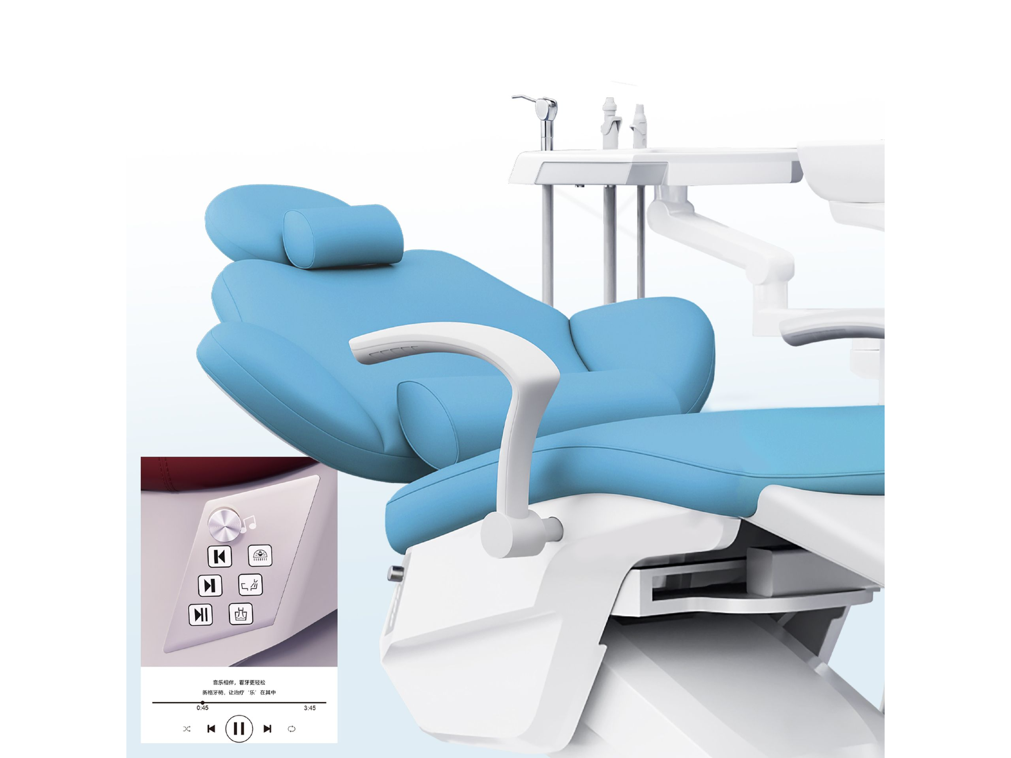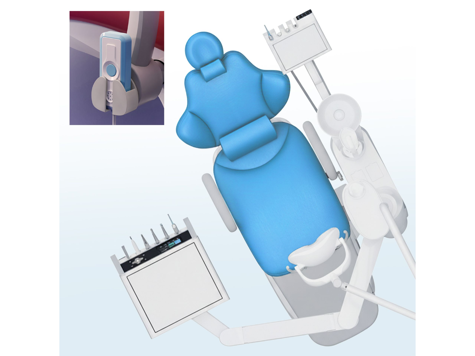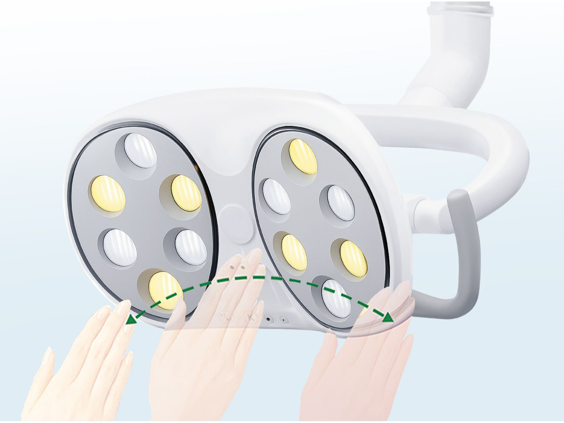 • Panel táctil infrarrojo: Control de posición del sillón, enjuague de salivadera, calentamiento de agua, llenado de vasos y luz del sillón.