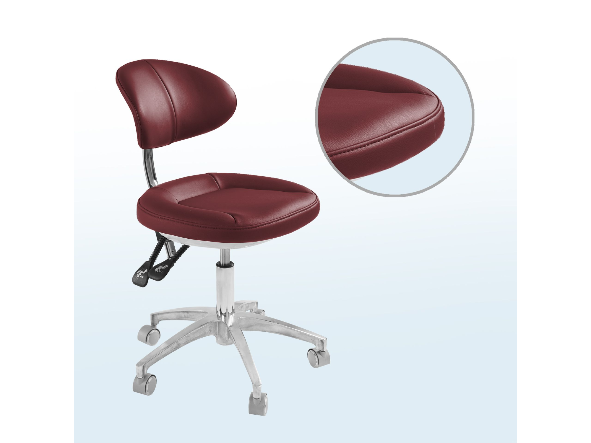 • Respaldo metálico ultrafino en forma de ala: Más espacio operativo para trabajo a cuatro manos sin comprometer la seguridad del paciente.