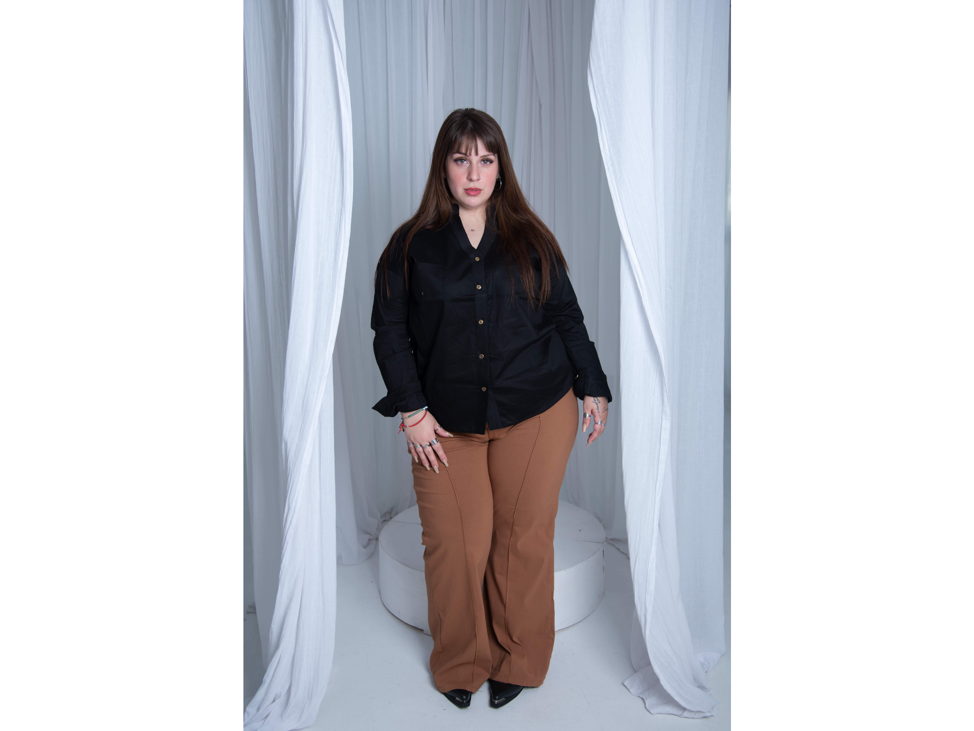 Elastizada manga 3/4 con bolsillo delantero y botones marfil.