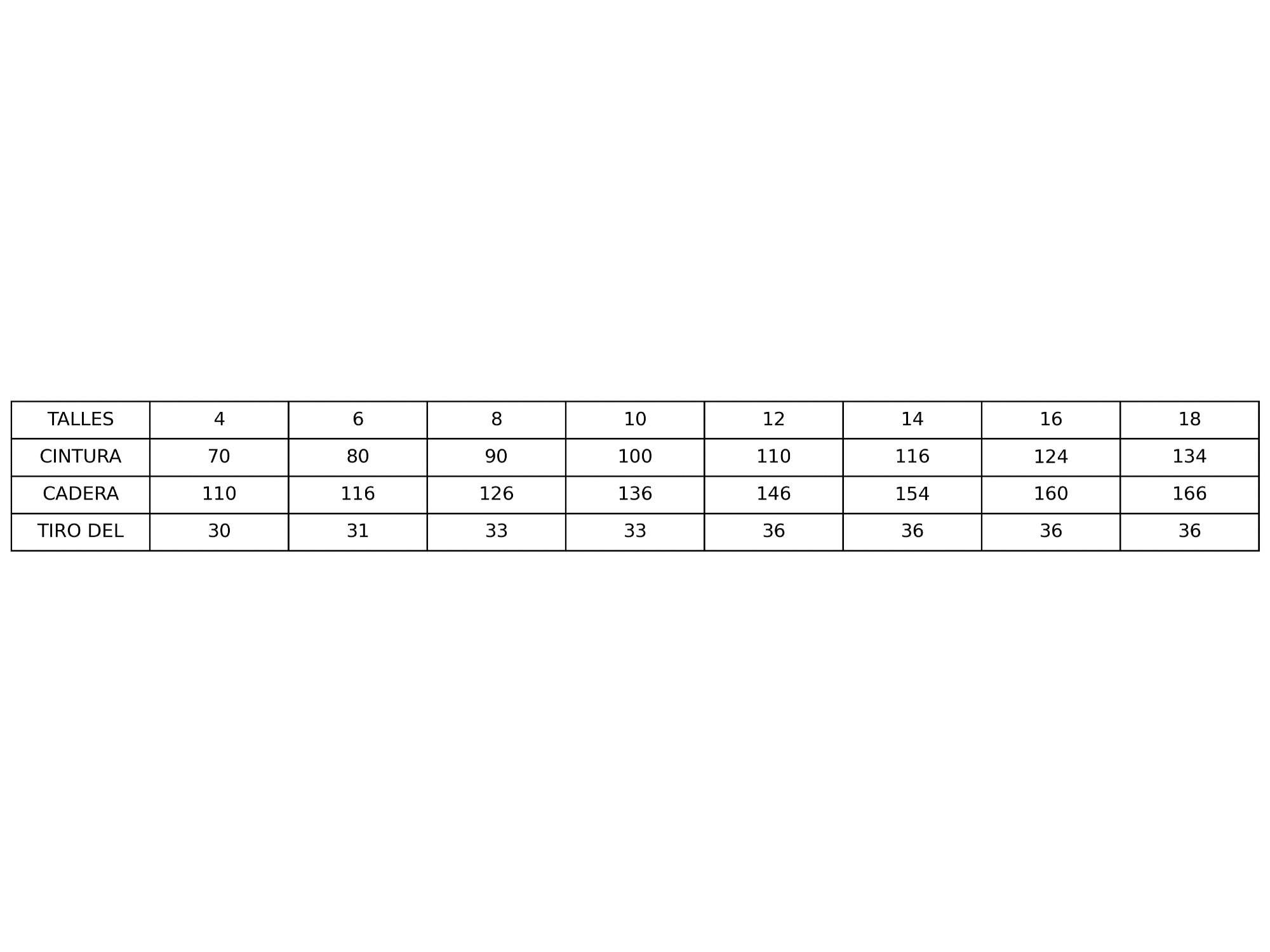 Con elástico en la cintura y bolsillos delanteros. Cintura estira 40 cm aprox. Cadera estira 50 cm aprox.