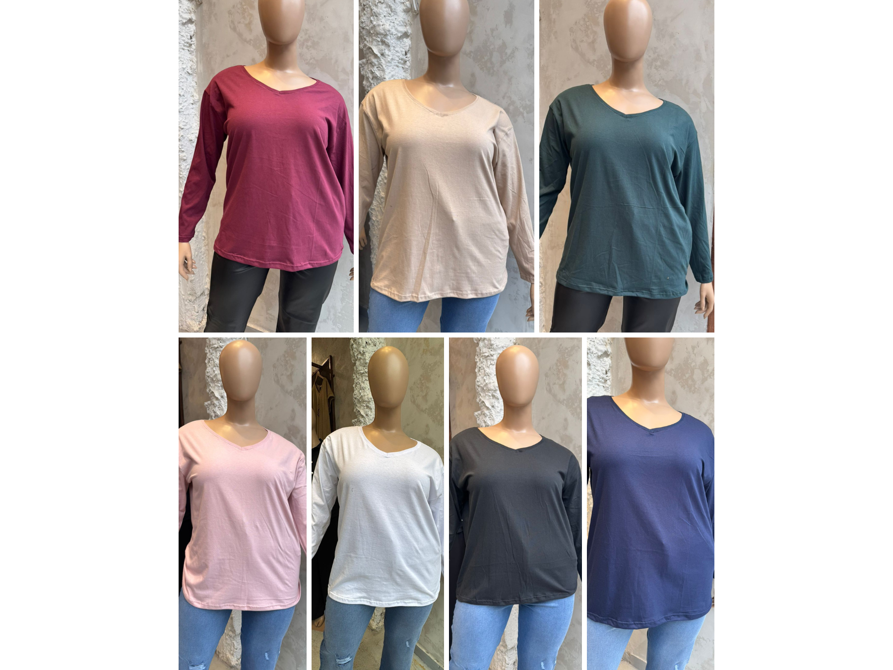 Remera básica escote en V manga larga estampadas Art. 601E V