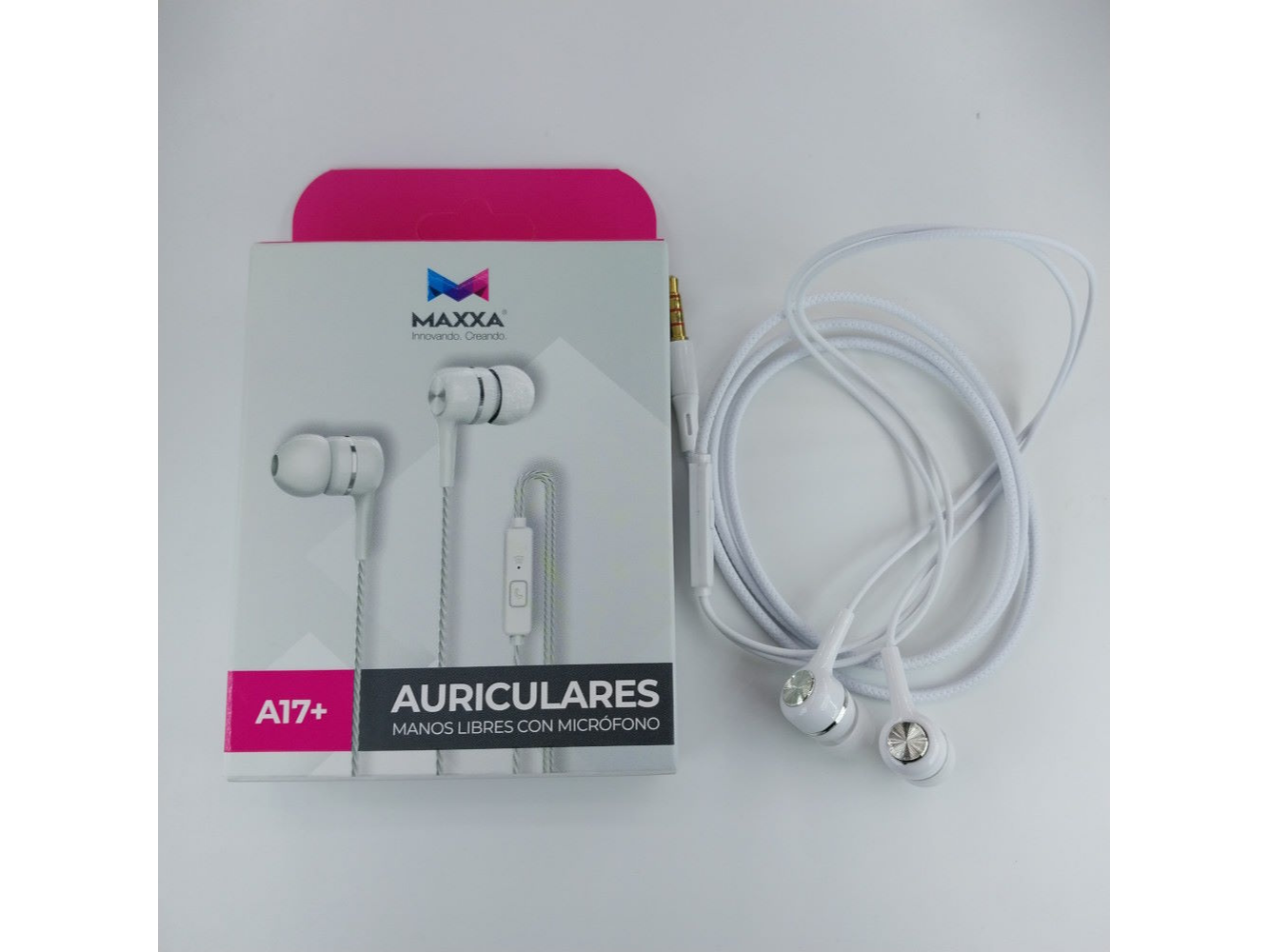 AURICULARES MAXXA A17+ INEAR PLUG 3.5MM BLANCO Compartir por WhatsApp Copiar enlace - MODELO: A17+ - CONEXIÓN: 3,5MM - CABLE TRENZADO - COLOR: BLANCO$1.800 Observaciones 0 / 150