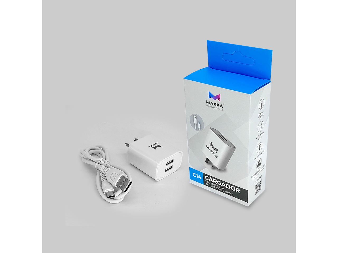 CARGADORES MAXXA 110V-240V 2 PUERTOS USB 2AMP PARED MAXXA C14 CAR+CAB/TP Compartir por WhatsApp Copiar enlace - CONEXIÓN: 2 PUERTOS USB - INCLUYE CABLE TIPO C 2 A - 5V-2A - COLOR BLANCO$4.000 Observaciones 0 / 150