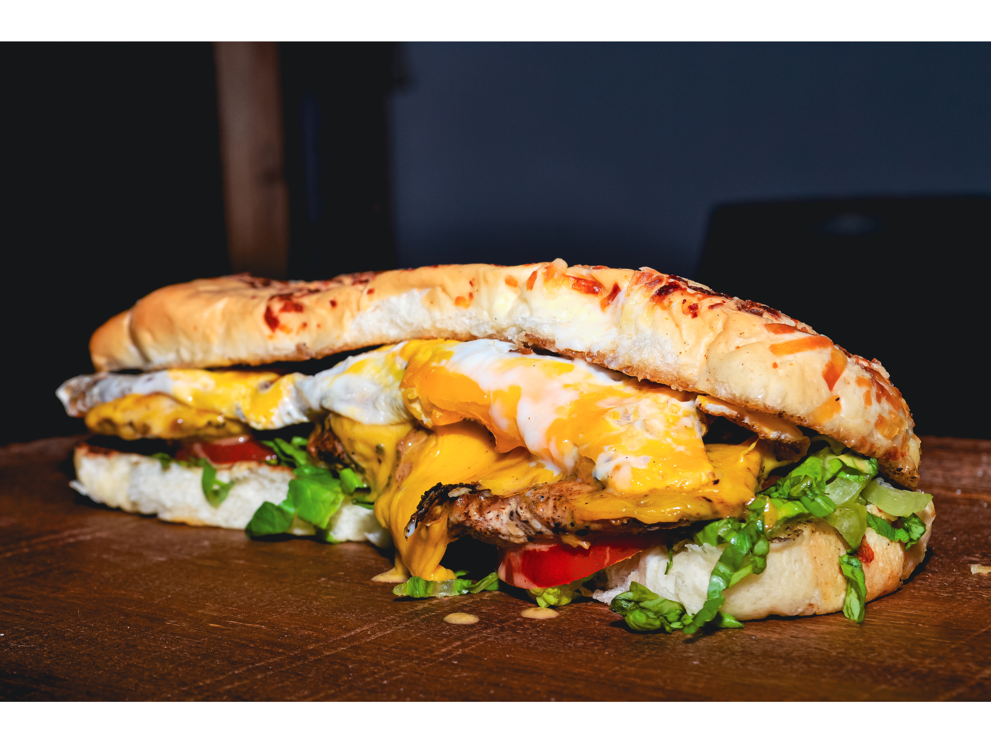 Última unidad Pan arabe, bifes de pollo, cheddar, lechuga, tomate, huevo a la plancha y salsa barbacoa. Sale con porcion de papas