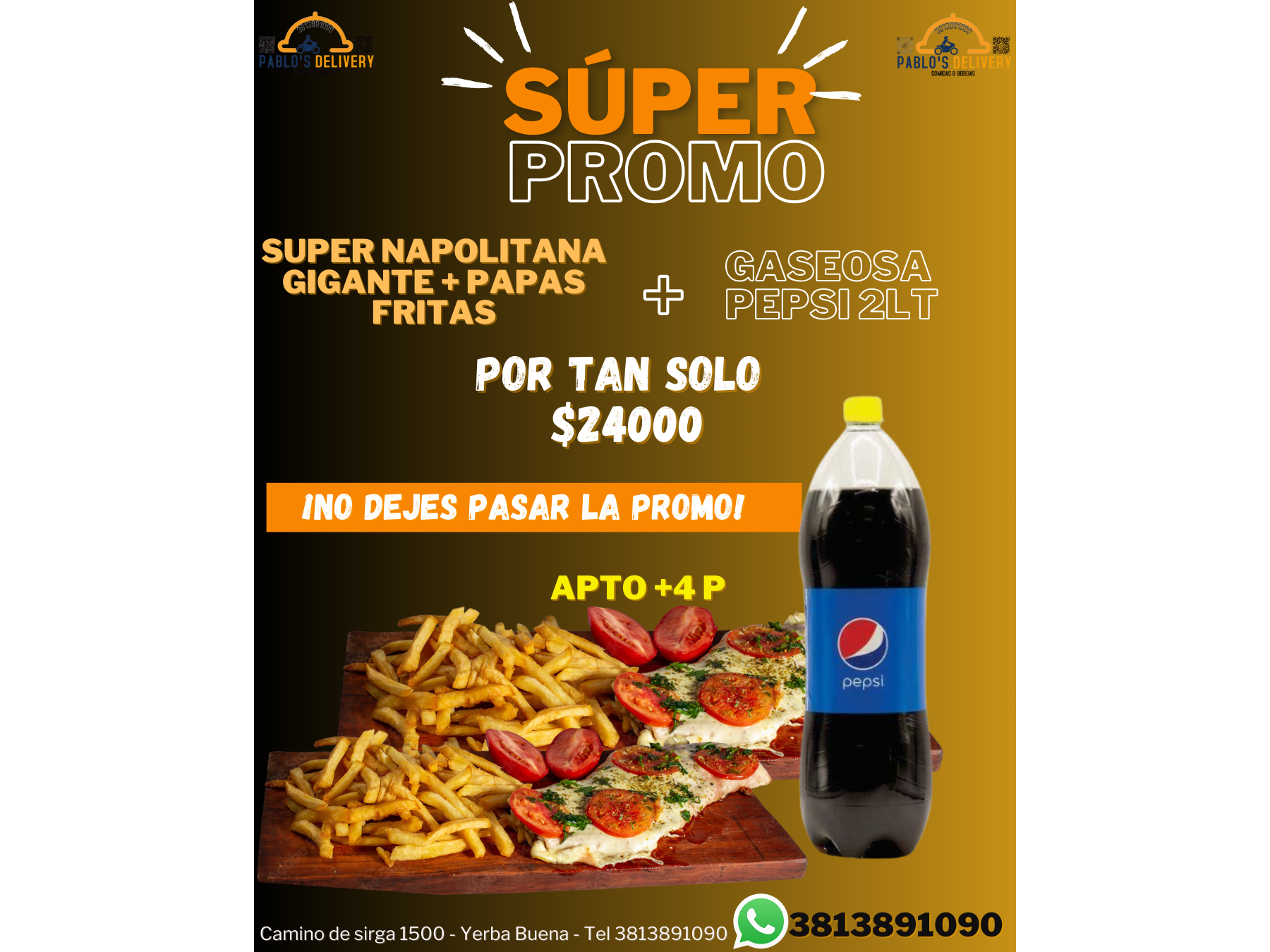 PROMO DE NAPO + BEBIDAS Filtros Compartir por WhatsApp Copiar enlace PROMOS MILAS AL PLATO PROMOS MILAS AL PLATO (3) SUPER AHORRO COMBO SUPER NAPO DOBLE + GASEOSA 2LT $27.000$24.000 11% OFF SUPER AHORRO COMBO PROMO NAPO IND. + 2 REFRESCOS $18.000$15.000 17% OFF SUPER AHORRO COMBO SUPER NAPOLITANA DOBLE + PAPAS EXTRAS + GASEOSA 2LT $33.500$29.500 12% OFF