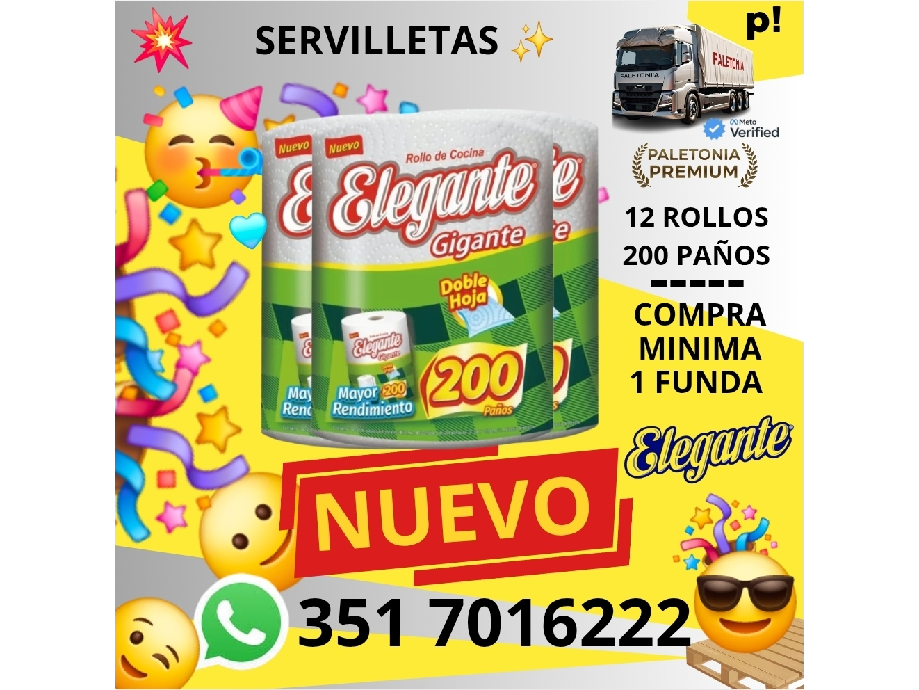 SERVILLETAS Filtros Compartir por WhatsApp Copiar enlace ROLLOS SERVILLETAS ELEGANTE GIGANTE 12 ROLLOS X200 INDIVIDUALES $25.000 ROLLOS SERVILLETAS FELPITA MAXIROLLO 12ROLLOS X200 INDIVIDUALES $25.000 ROLLOS SERVILLETAS ROLLO MAXISEC 8 ROLLOS X200 INDIVIDUALES $15.000