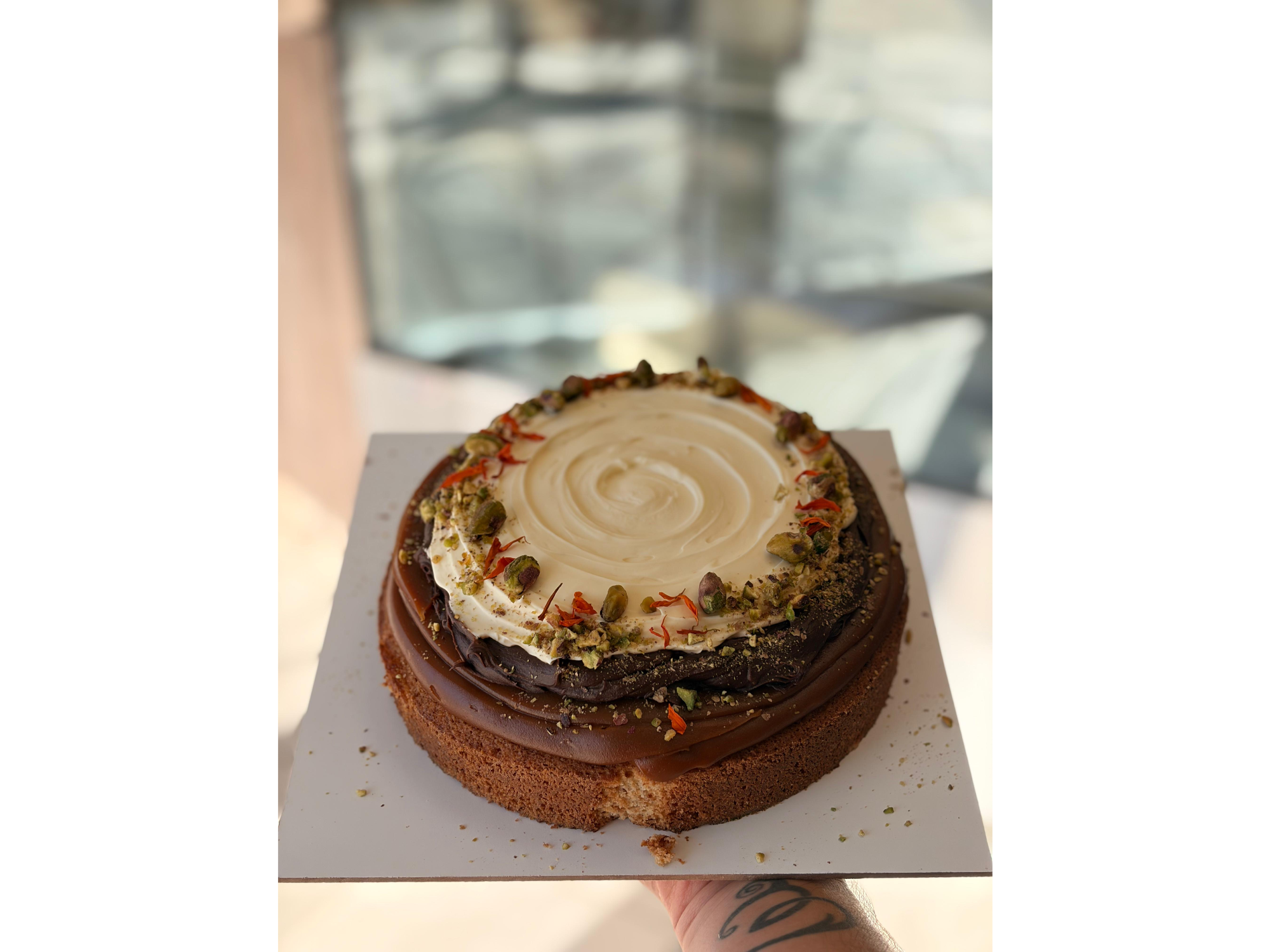 BLONDIE BARILOCHE Compartir por WhatsApp Copiar enlace 48 hs de anticipación!!! Blondie (brownie de choco blanco) con crema bariloche y crema con pistacho Se entrega con caja. Solicitar sin costo: velita, moño y tarjeta$50.000 Observaciones 0 / 150