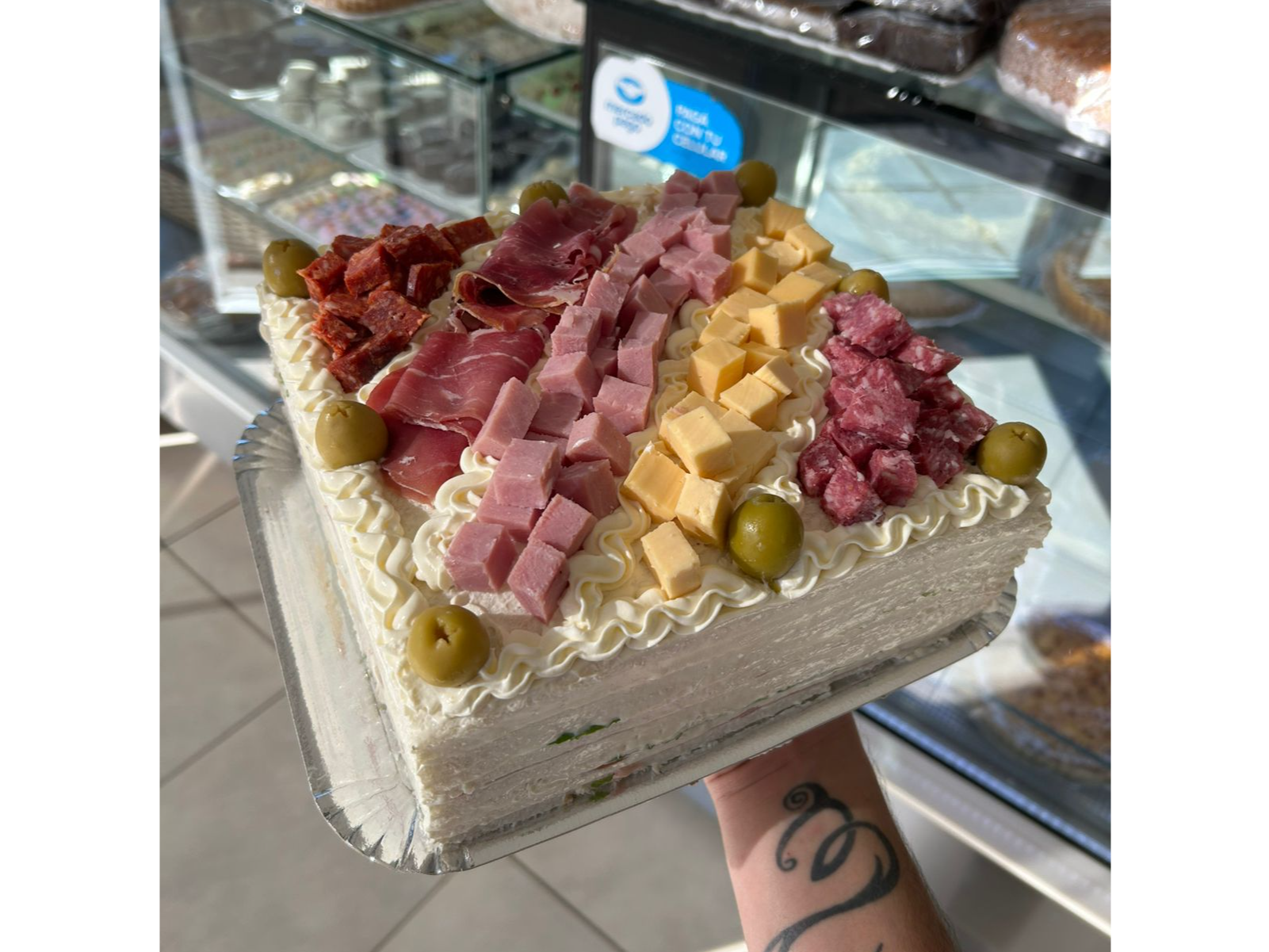 Torta de miga Surtida 3 sabores Compartir por WhatsApp Copiar enlace 24 hs DE ANTICIPACIÓN. Con picada arriba. Elegir 3 sabores.$34.000 Personalizá tu selección Las siguientes opciones aplican para cada producto agregado. Sabores para tortas de migas surtidas. Seleccioná las opciones que quieras.Bondiola primaveraBondiola y quesoCrudo y quesoCrudo y ananáCrudo, roquefort y nuezCrudo, roquefortCrudo, rucula y queso parmesanoPollo, morron y huevoPollo, Zanahoria y huevoPrimavera con polloPrimavera con jamónVege: Queso, rucula y tomateSalame y quesoTomate, huevo y quesoZanahoria, huevo y quesoJamon y quesoJamon y queso. Pan de salvadoJamon, queso y ananaMorron, huevo y queso Observaciones 0 / 150