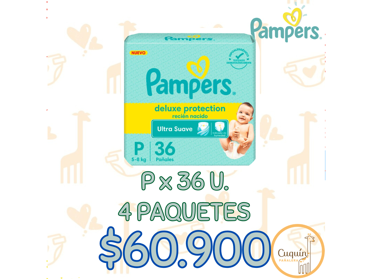 OFERTAS PAMPERS Compartir por WhatsApp Copiar enlace Presentaciones Seleccioná las opciones que quieras.4 Paquete - Pampers Baby-Dry RN+ x 36 (6 Kilos)$62.000$53.900 13% OFF 3 Paquete - Pampers Baby-Dry P x 56$63.000$54.900 13% OFF 4 Paquete - Pampers Deluxe RN x 36 (4 Kilos)$79.900$69.900 13% OFF 4 Paquete - Pampers Deluxe RN+ x 56 (6 Kilos)$108.000$94.500 13% OFF 4 Paquete - Pampers Deluxe P x 36$69.900$60.900 13% OFF Complementos para tu pedido Agregá items adicionales a tu pedido. Extras Seleccioná las opciones que quieras.3 Unidades Toalla Q-Soft Oleo Calcareo x 40$10.0003 Unidades Toalla Huggies Limpieza Efectiva x 48 u.$10.500Off Familiar x 170 ML$5.500 Observaciones 0 / 150