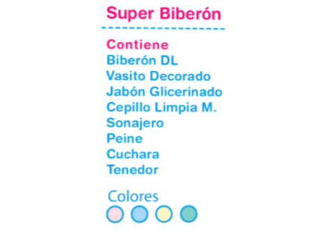 Super Biberón Presentaciones Seleccioná una opción.Rosa Última unidad $16.500Verde Última unidad $16.500Celeste Sin stock $16.500Amarillo Sin stock $16.500 Observaciones 0 / 150